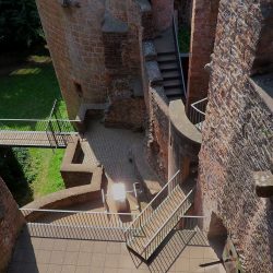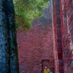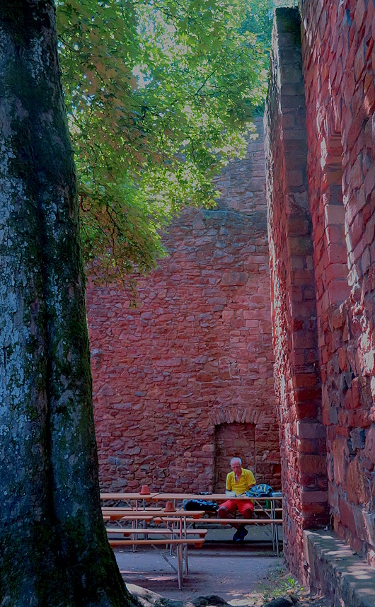 Bevor wir die Burg besichtigen, fahren wir jedoch noch runter nach St.Gangolf, schauen in den Klostergarten und bewundern die 1000 Jahre alte Richteiche.