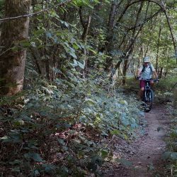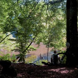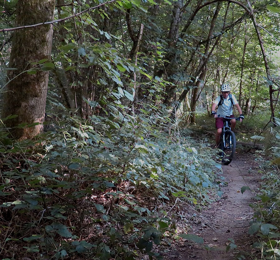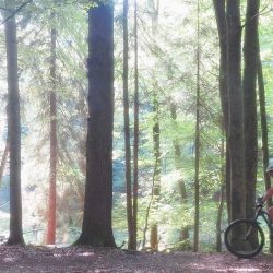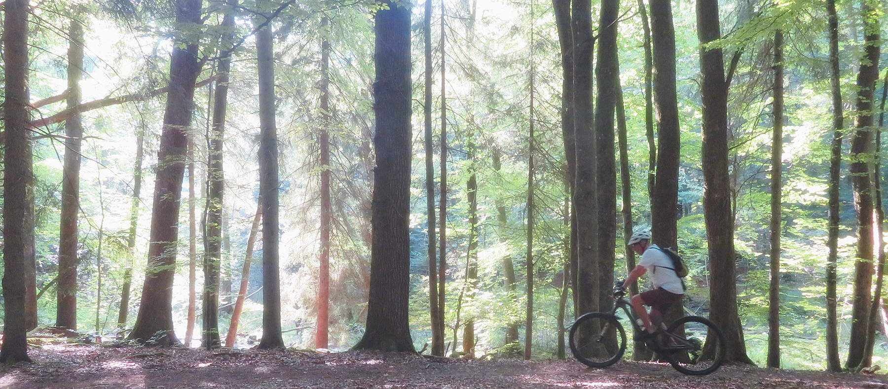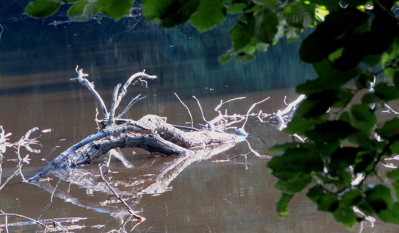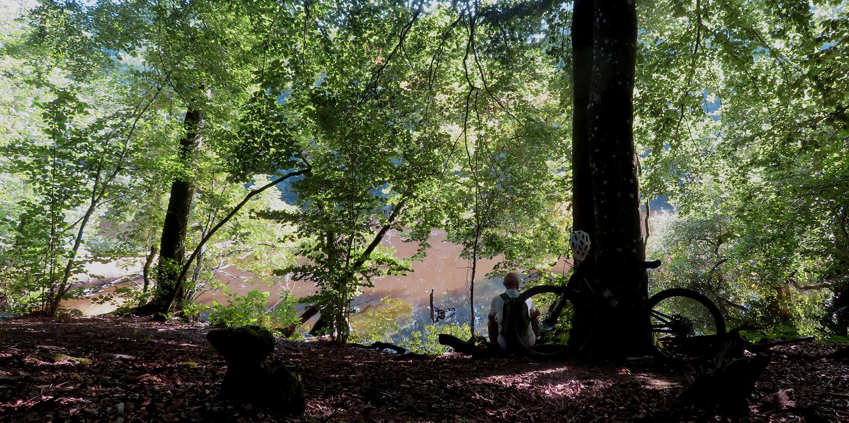 Am Weiher mache ich Rast und wollte den Vogelstimmen lauschen, aber es herrschte eine gespenstige Ruhe. Nur ein Gravelbiker stöhnte den Trail am Weiher hinauf…