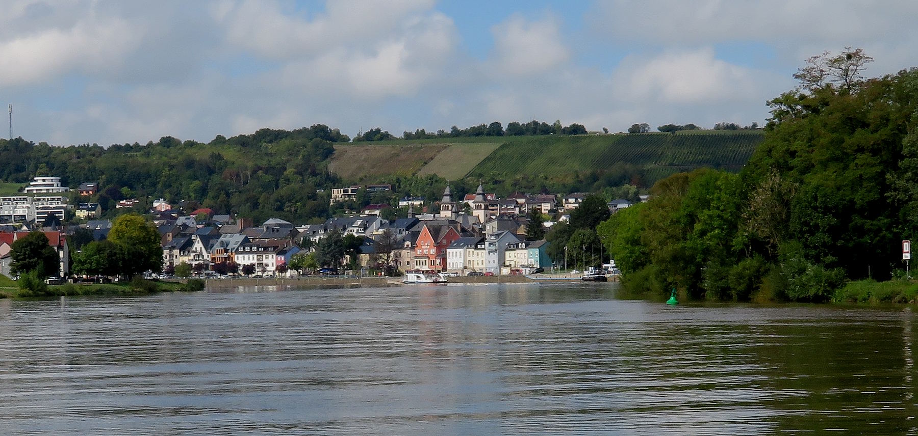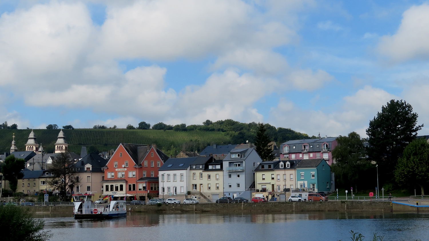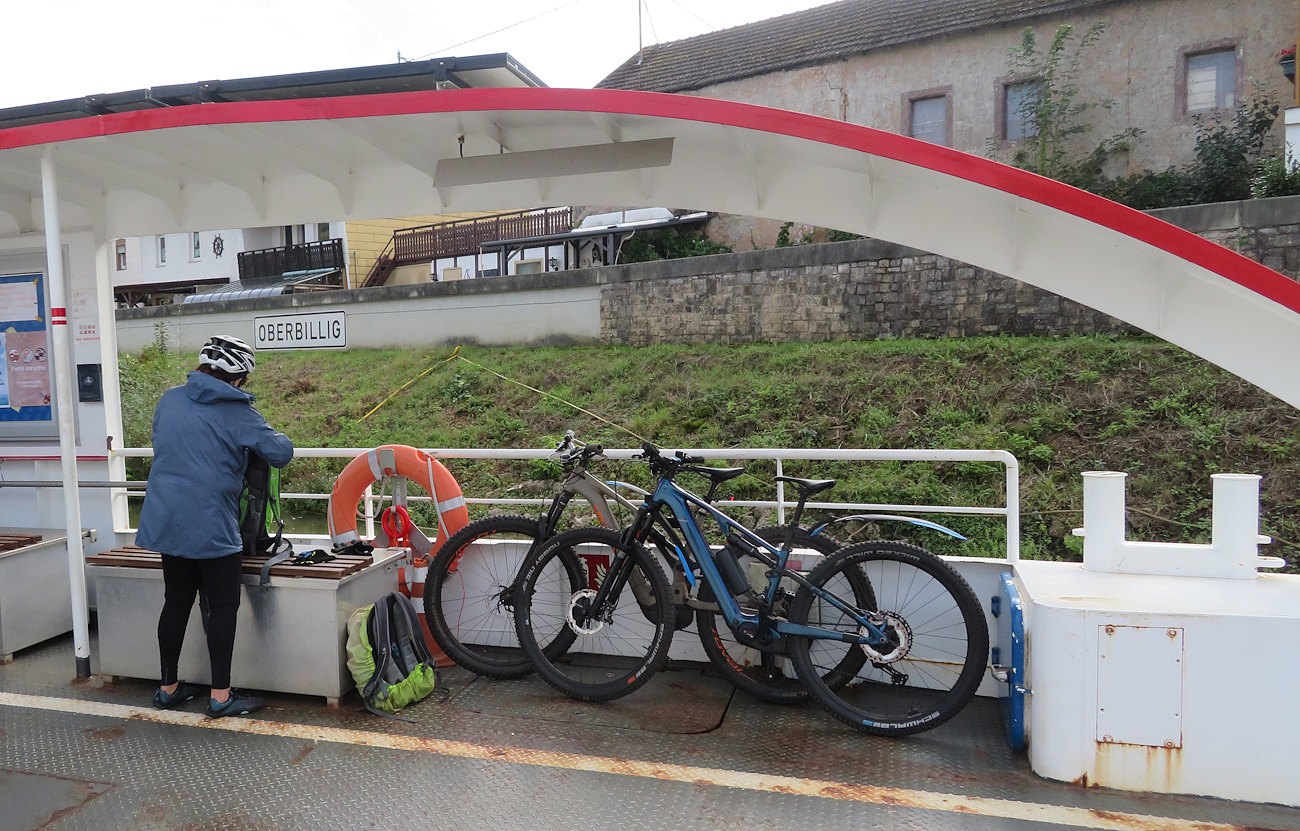 Wir landen im schönen Oberbillig, Wasserbillig auf der anderen Seite. Eine Fähre bringt uns für ein paar Euros auf die andere Seite und wir können die Flussradtour fortsetzen…