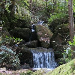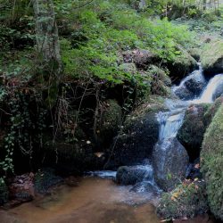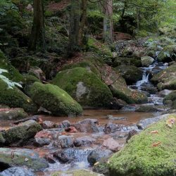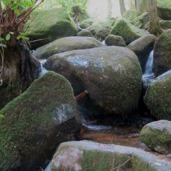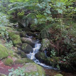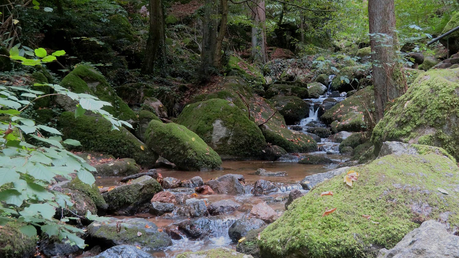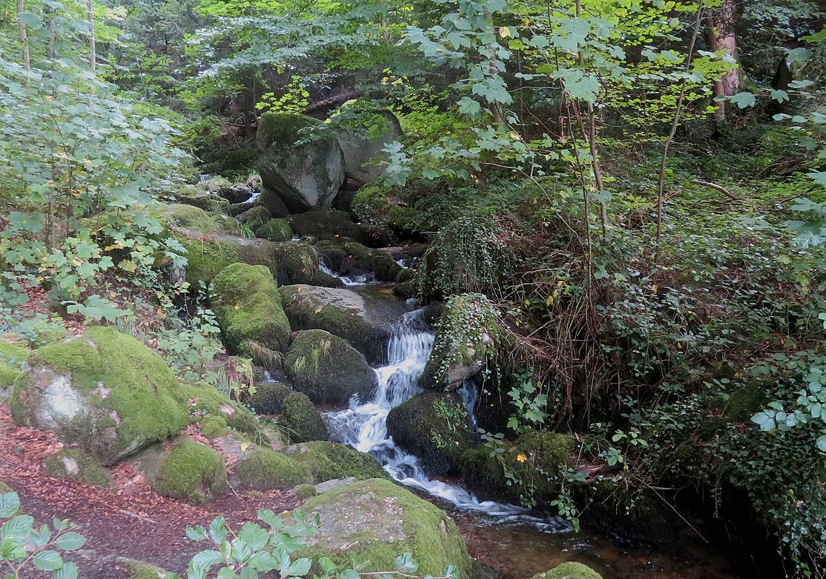 Ein Bach kommt von den Höhen des Schwartwaldes herunter und hat sich im Laufe der Jahrtausende tief in den Wald eingegraben und eine Felslandschaft frei gelegt…