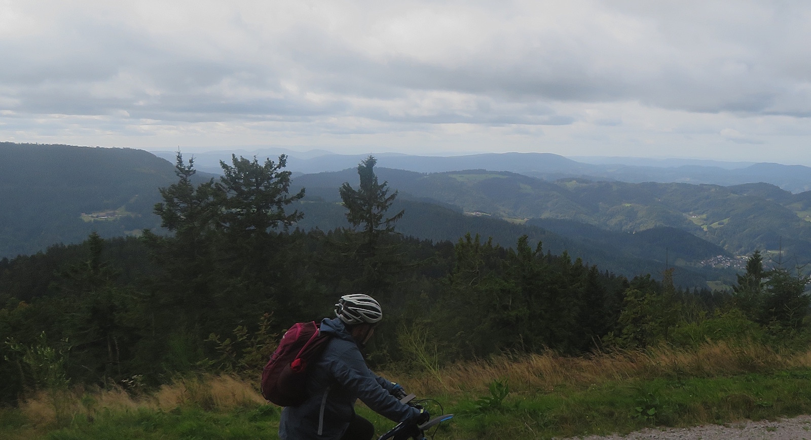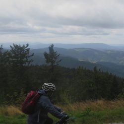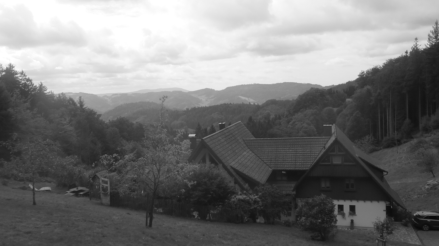 Der Weg dorthin war für uns jedoch interessant und lohnend: typische Schwarzwaldlandschaft, Fernblicke in die Rheinebene, schöne Schwarzwaldhäuser, schöne Trails, zum Teil aber auch steile Geröllpisten…