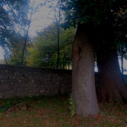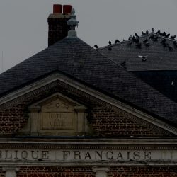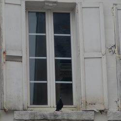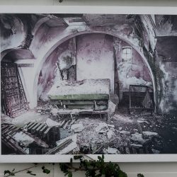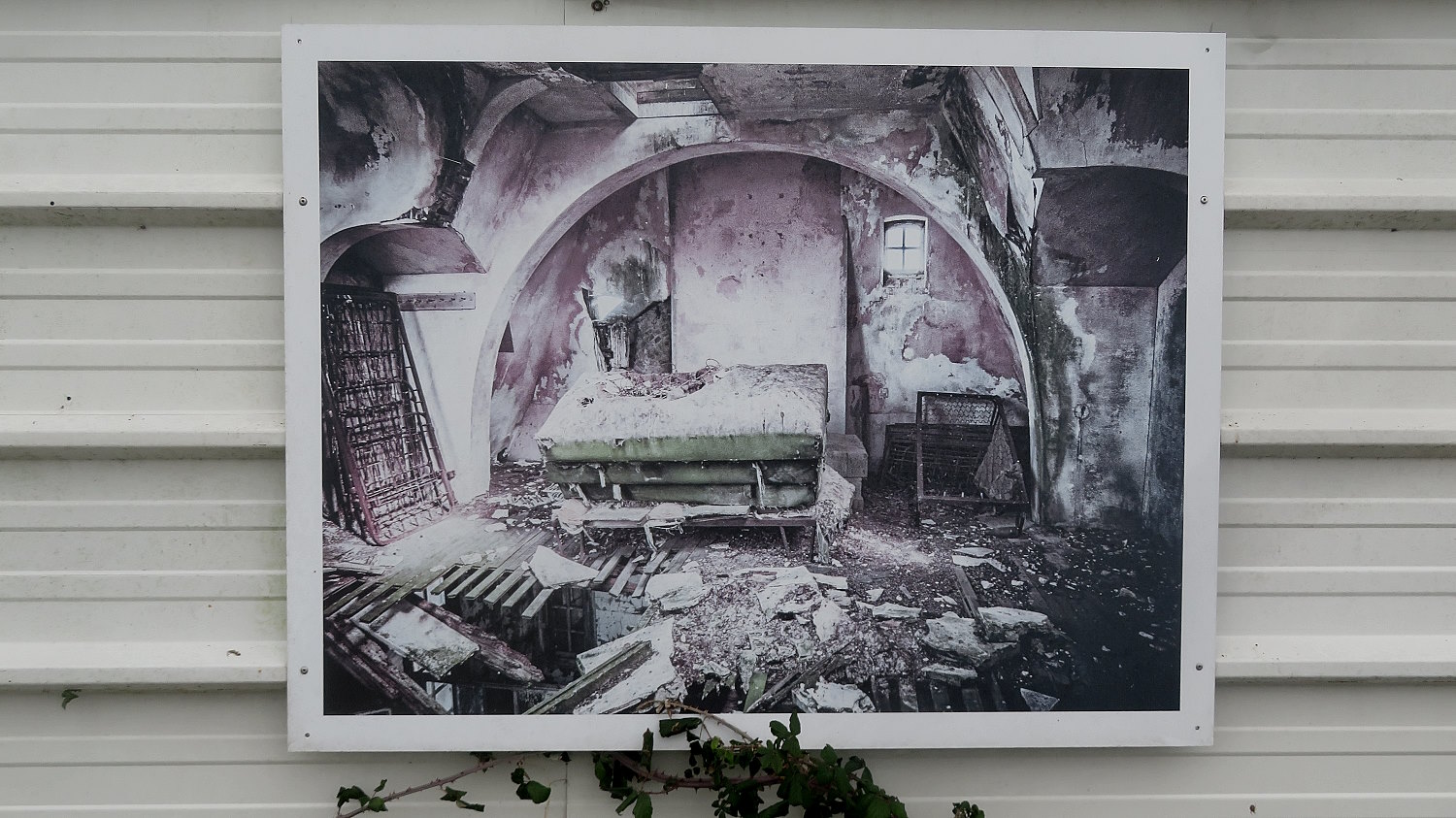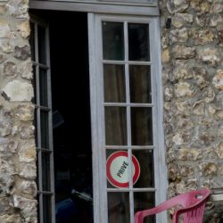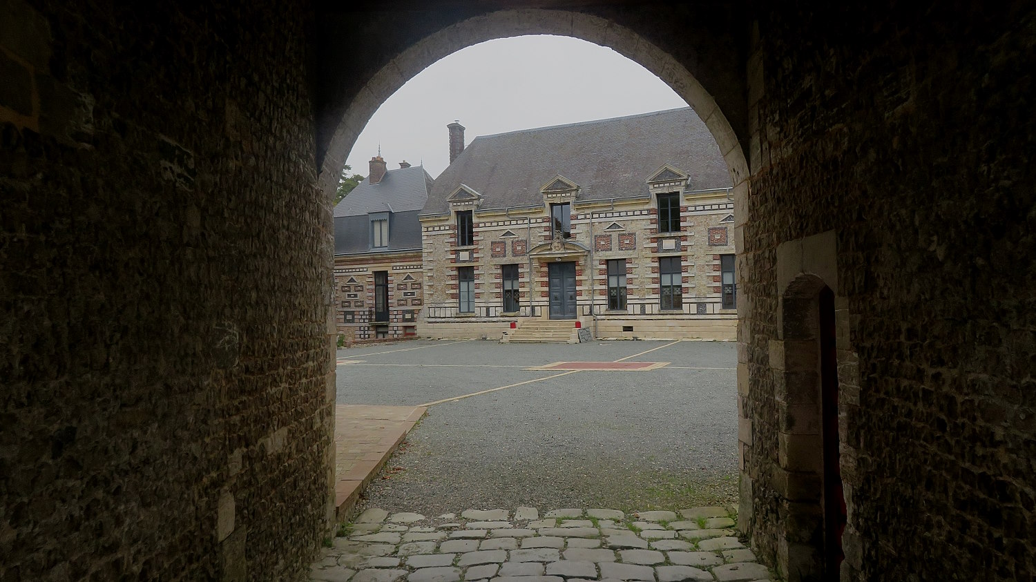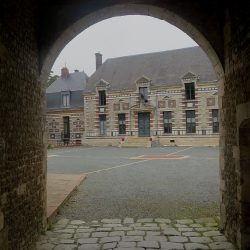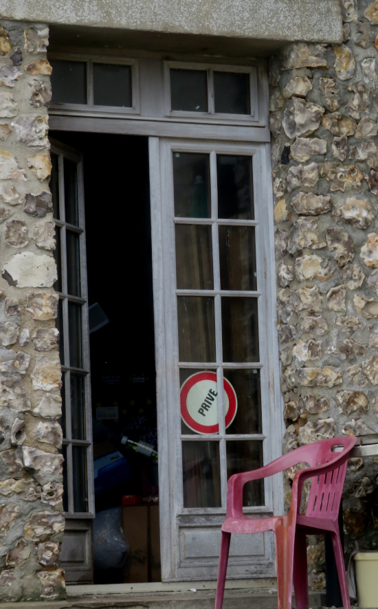 Eher zufällig entdecken wir dann das Märchenschloss im Ort Saint Jouin, ein Lost Place, aber durch einen massiven Zaun geschützt. Scheinbar hat die Gemeinde einen berühmten Fotografen engagiert, der den Lost Lost Place fotografiert hat. Die Fotos sind zum Teil vergrößert außen am Zaun aufgehängt.