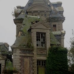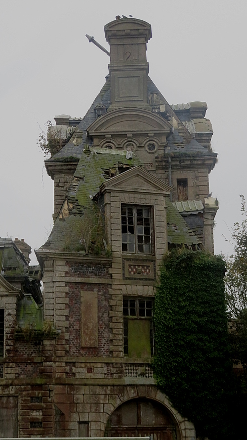 „Noch wirkt das Schloss „Clos des Fées“ in der französischen Gemeinde Saint-Jouin-Bruneval, dessen heutiger Zustand auf einen Brand in den 1990-er Jahren zurückzuführen ist, wie eine gespenstische Filmkulisse…