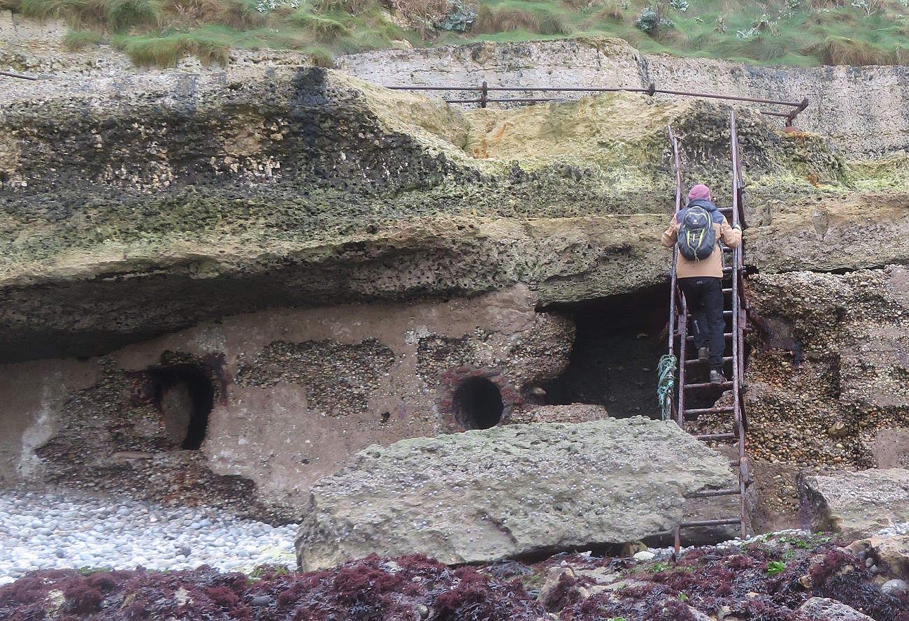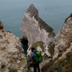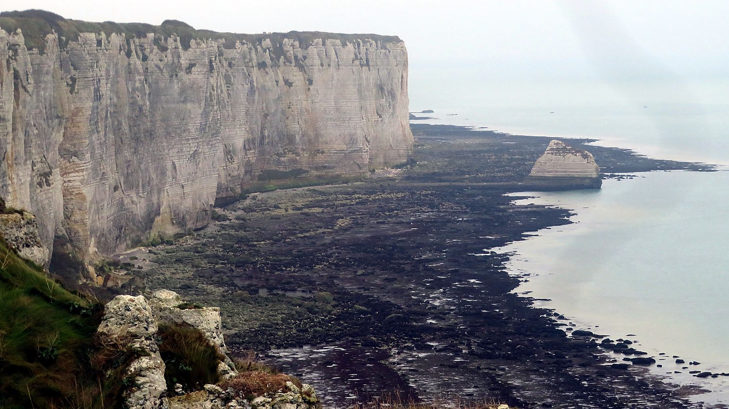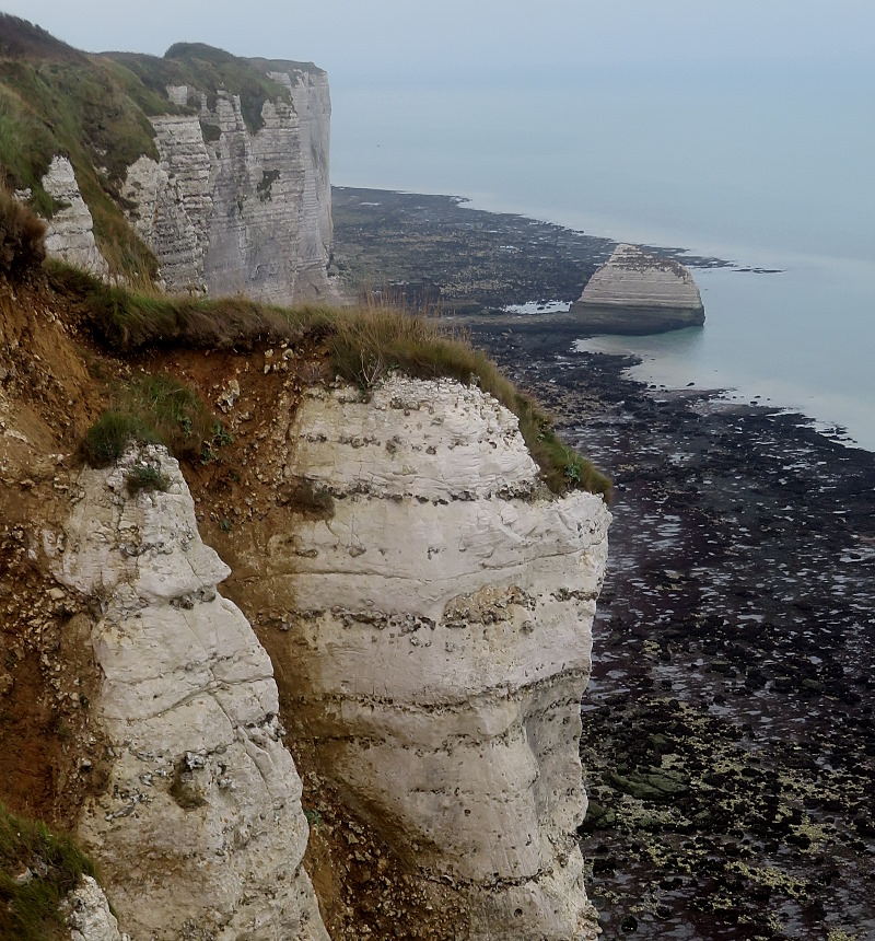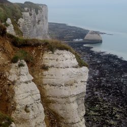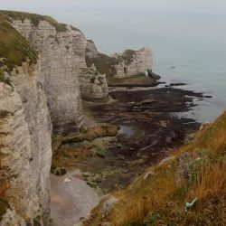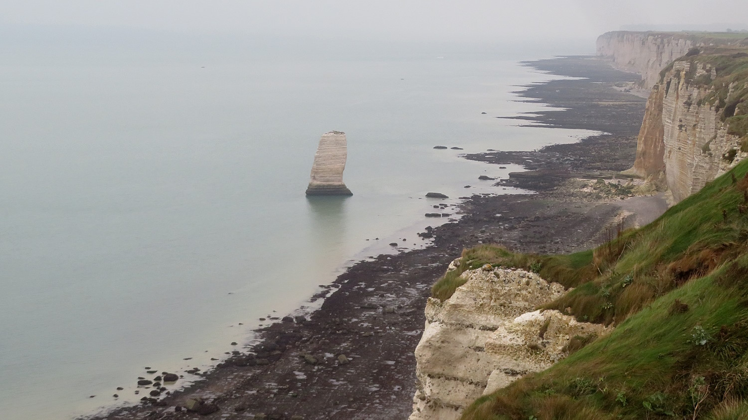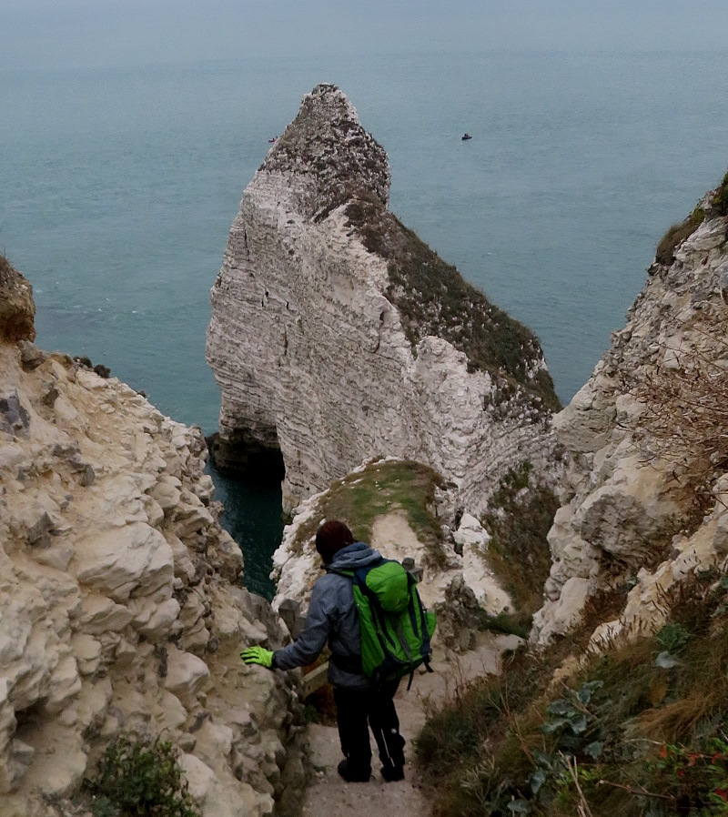 Dann finden wir vor Etretat einen spektakulären Pfad durch die Kreidefelsen hinunter zum Meer. Natürlich nur zu Fuß machbar – und das auch nicht für jeden…