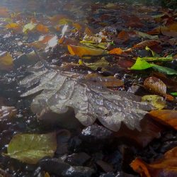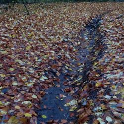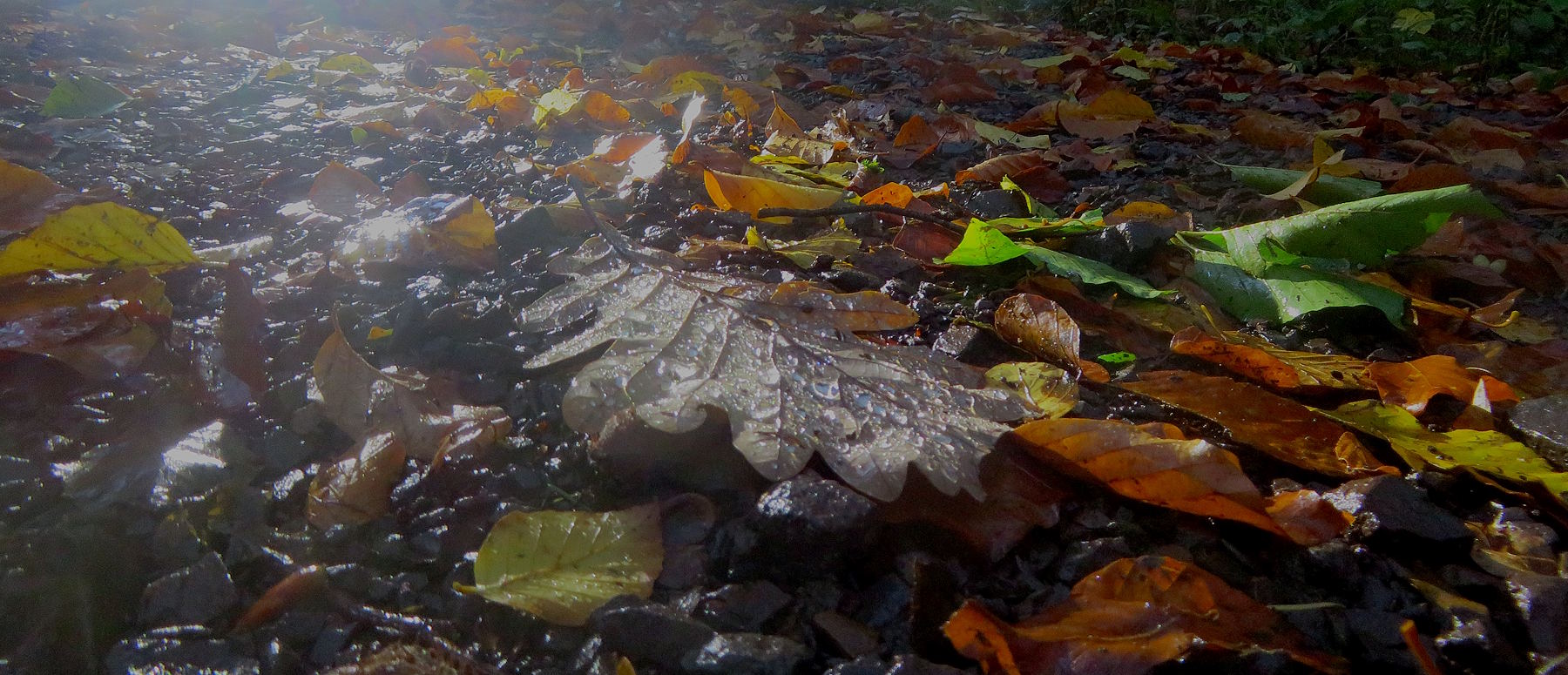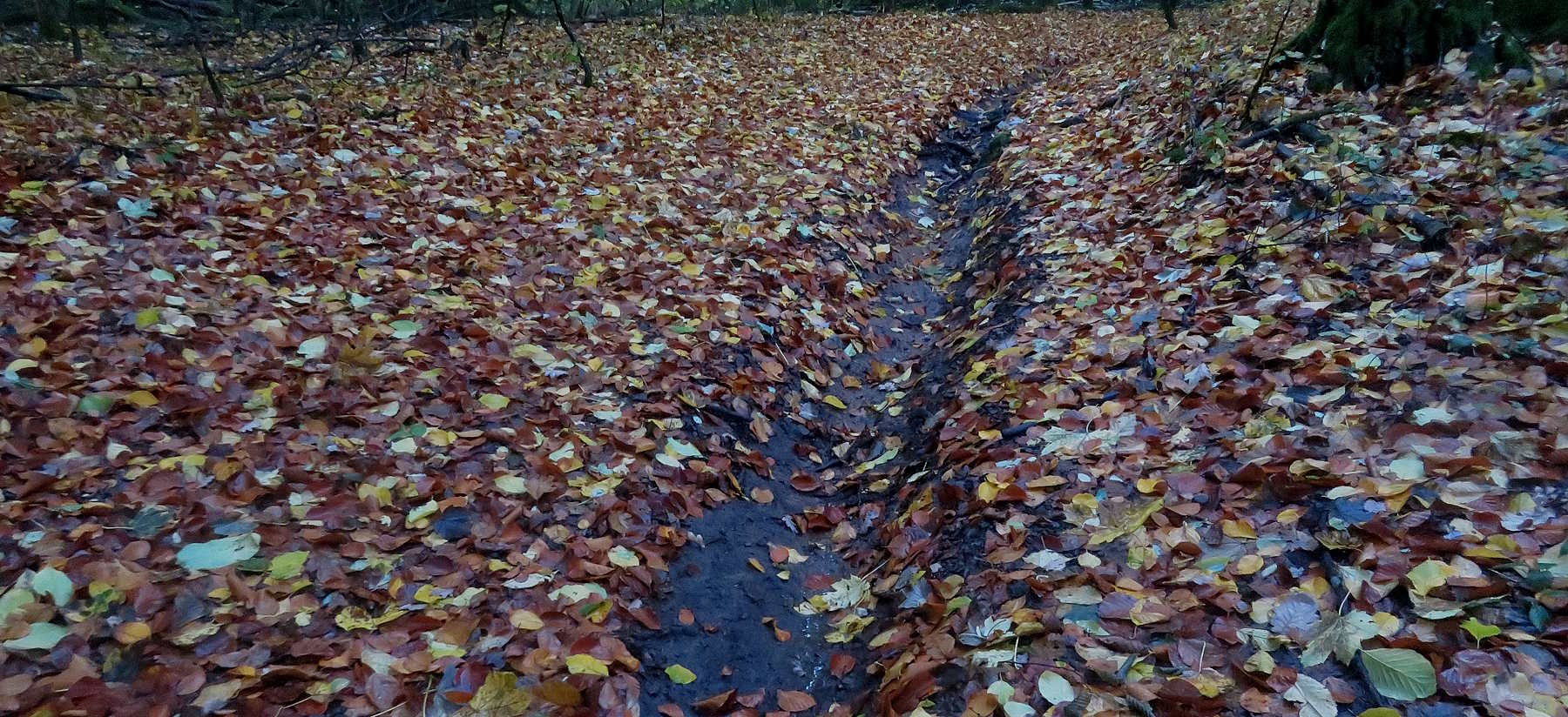 Die Wege sind stark ausgewaschen, Rinnen freigelegt, Blätterteppiche überall und aufgetürmte Blätterhaufen…