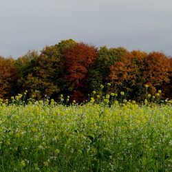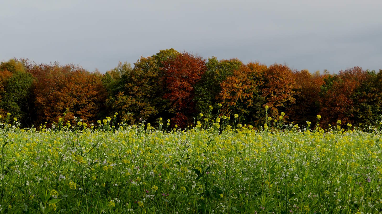 Heute konnte ich mich wieder einmal an den herbstlichen Farben satt sehen. Besonders die Eichen legen ein schönes Kleid an, aber auch andere Bäume. Das helle Grün auf den Feldern bildest dazu einen guten Kontrast.