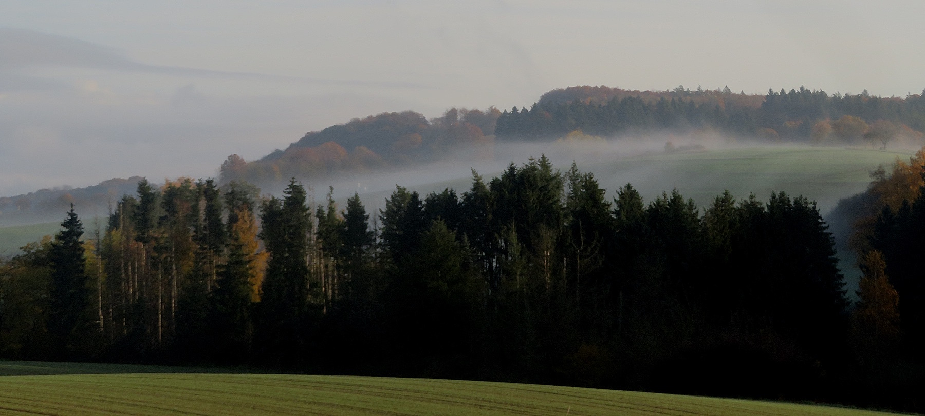 Landschaft und Wetter sind heute einem Fotokalender entsprungen: Sonne, bunte Herbstfarben, milde Temperaturen: ein toller Herbstmorgen, den wir abspeichern für trübe Tage…