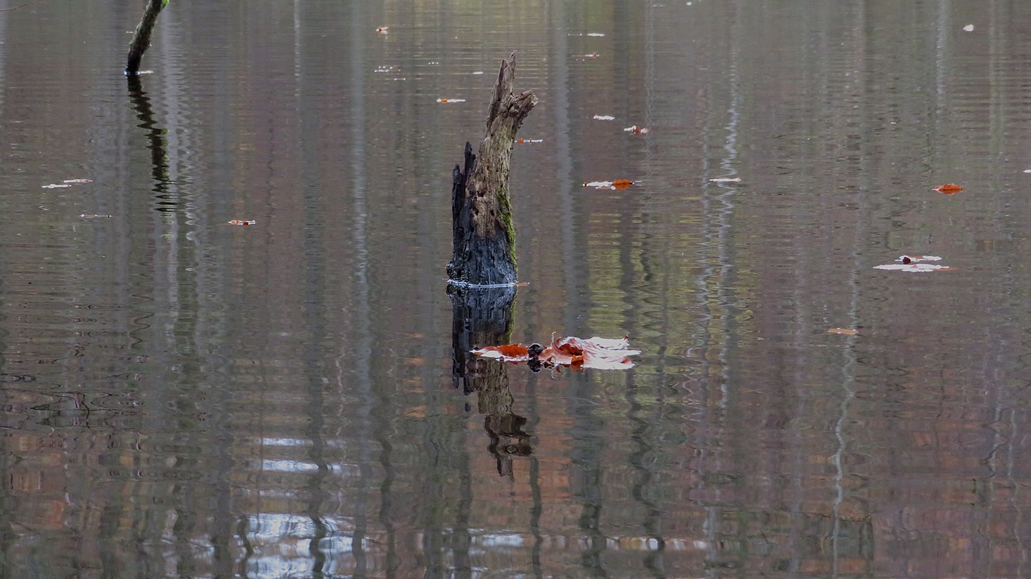 Am Weiher steigt ein Rudel Enten vom Weiher auf, als ich mich ihnen nähere. Die Ruhe des Einen beeinträchtigt die Ruhe der anderen. Was nicht meine Absicht war. Ich hätte ihnen lieber beim Herumpaddeln auf dem Wasser zugesehen. Anstelle der Enten beobachte ich die Wassertropfen, die die Himmel in den Weiher fallen lässt. Kaum zu spüren aber zu sehen…