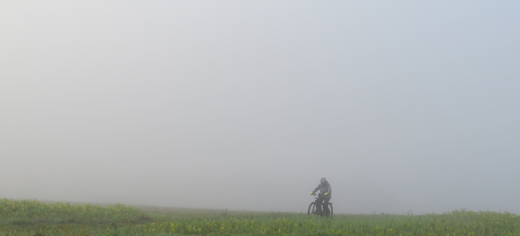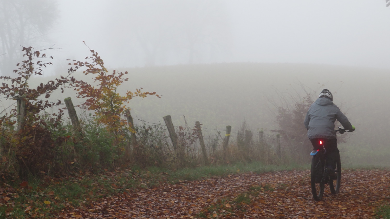 Dichter Nebel bedeckt das Land und hält den Blick in der Nähe gefangen. Wir sind in ihm unterwegs…
