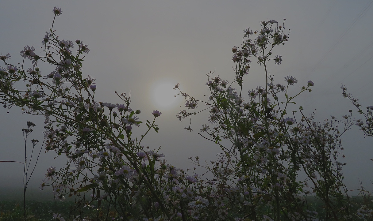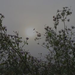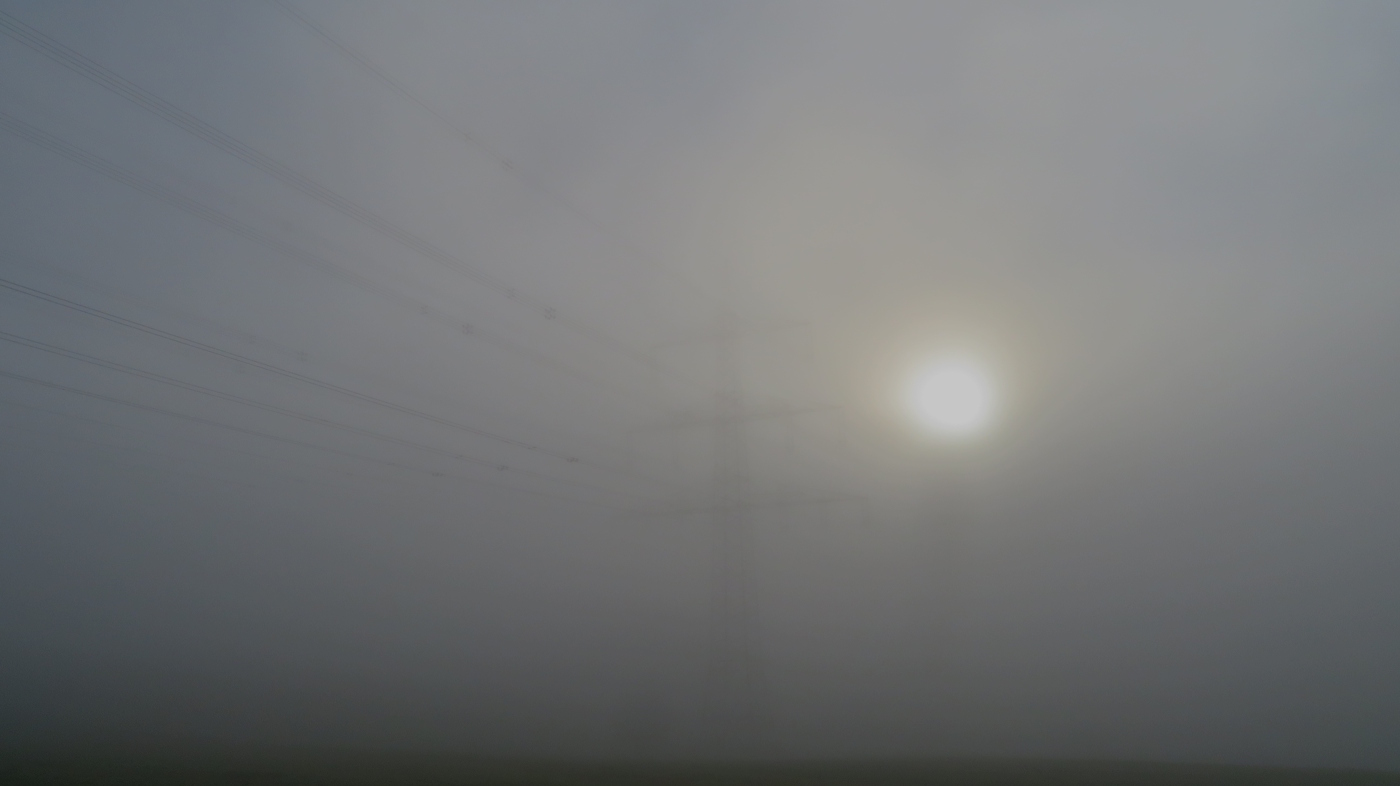 Die Sonne ist zwar da, aber sie kann den Nebel nicht auflösen und bleibt als kleine helle Scheibe am Himmel stehen…