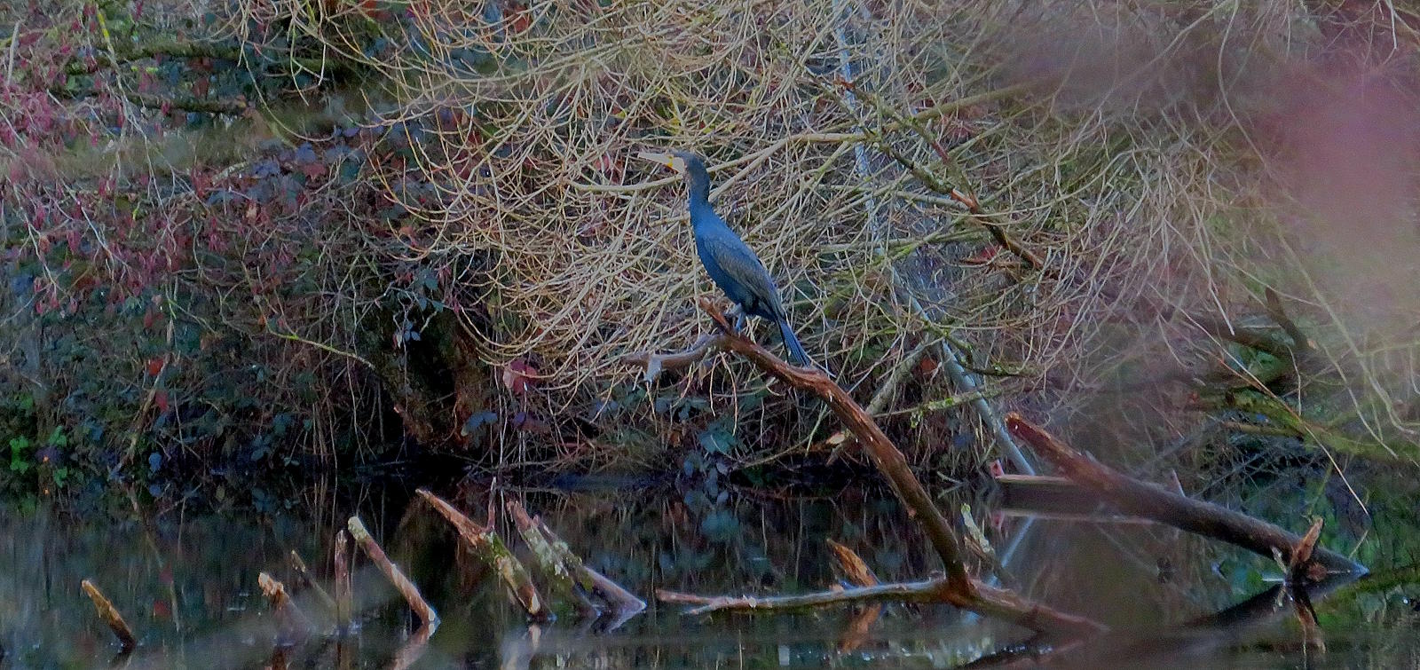 Am Weiher direkt beim Hof, am Jägerweiher, sind es meist die Wasservögel, die mich interessieren. Heute sitzt ein Kormoran auf der Lauer nach Fischen.