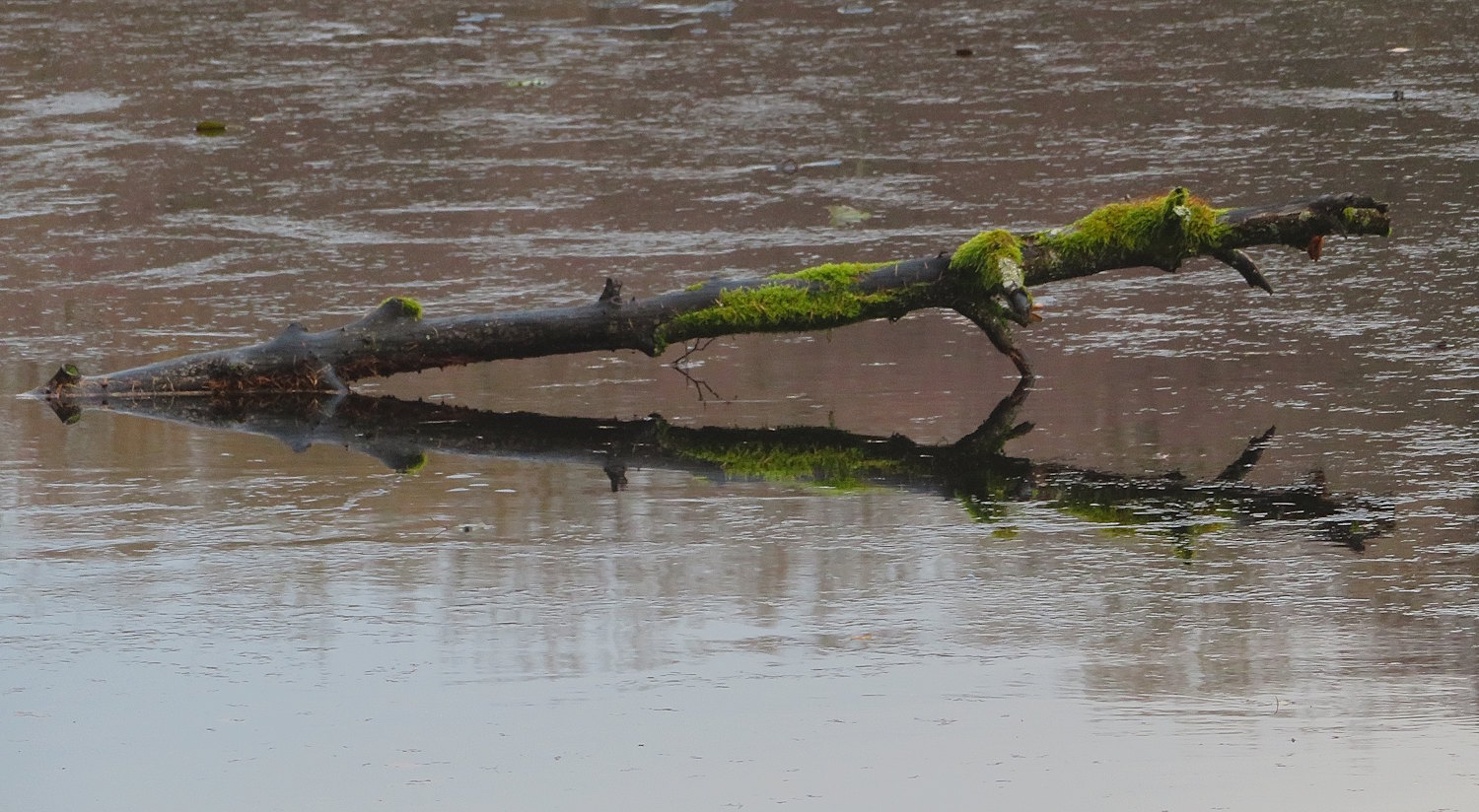 Oft bleibe ich aber auch am nächsten Weiher „hängen“, entweder auf der Bank an der Staumauer oder auf meinem selbst gezimmerten Sitzplatz aus Baumstämmen weiter hinten am Weg.