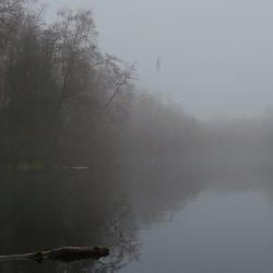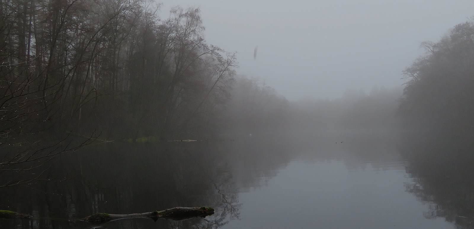 Ein feuchter Nebel hüllt die beiden Weiher ein. Wenig später dann fängt es auch noch an leicht zu regnen. Wie so oft kann ich die Stille und Präsenz des Waldes genießen…