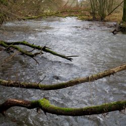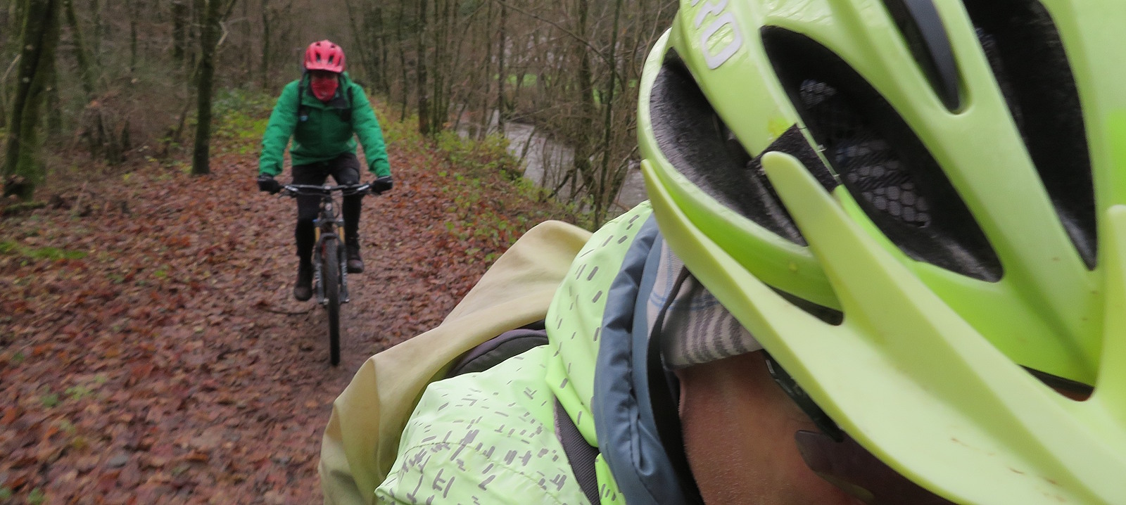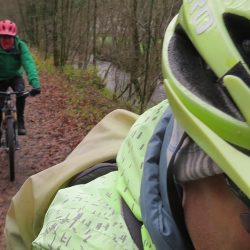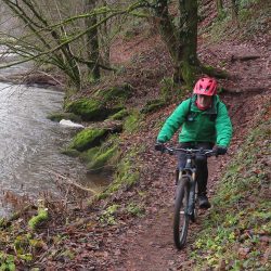 Ihm folgen wir wieder einmal. Die Prims ist gut gefüllt und rauscht munter neben uns her. Ein bisschen feucht ist es natürlich, aber gut fahrbar. Vom hier aus fahren wir rüber zum Noswendler Weiher. „See“ ist nicht unbedingt ein passender Begriff für das kleine Gewässer. Nochmal schön und feucht ist dann der Trail von Bardenbach nach Überlosheim. Und vor allen Dingen: alle umgefallenen Bäume sind zersägt und wir können bequem dem Weg folgen ohne absteigen zu müssen…