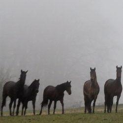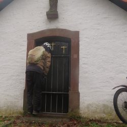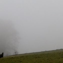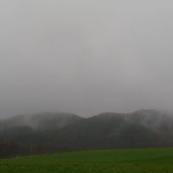 Da es zur Zeit sehr nass im Wald ist, bewege ich mich auf Nebensträßchen und geschotterten Wegen am Rande des Hochwaldes entlang. Das Land ist in Feuchtigkeit eingepackt. In Waldhölzbach hängen die Wolken tief. Kühe und Pferde schauen verwundert, als ein einsamer Mountainbiker an ihren Weideplätzen vorbei fährt.