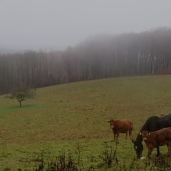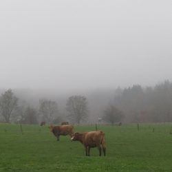 … stehen die Kühe auf der Weide und blicken verwundert ob des ungewohnten Radfahrers im Hochwald…