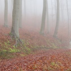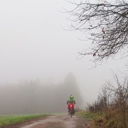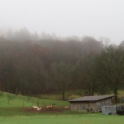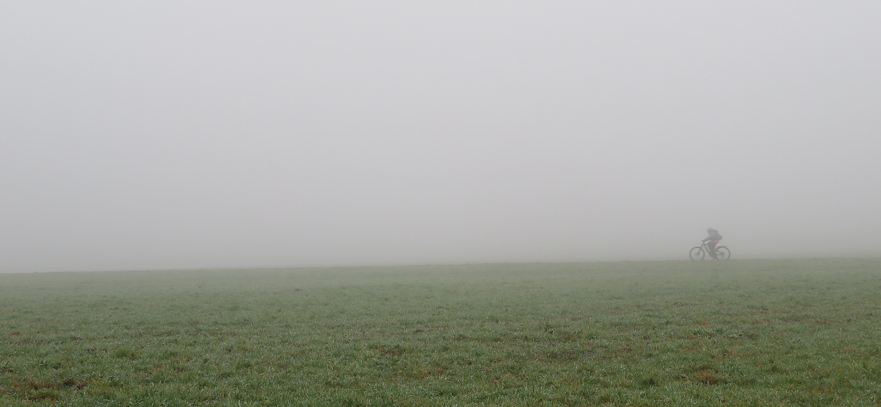 Vorher steigen wir aber durch den Nebel auf zur Wahlener Platte. Auch heute: dichter Nebel. In Rissenthal ist es natürlich noch sonntäglich still, lediglich ein paar Hunde führen ihre Herrchen und Frauchen Gassi…