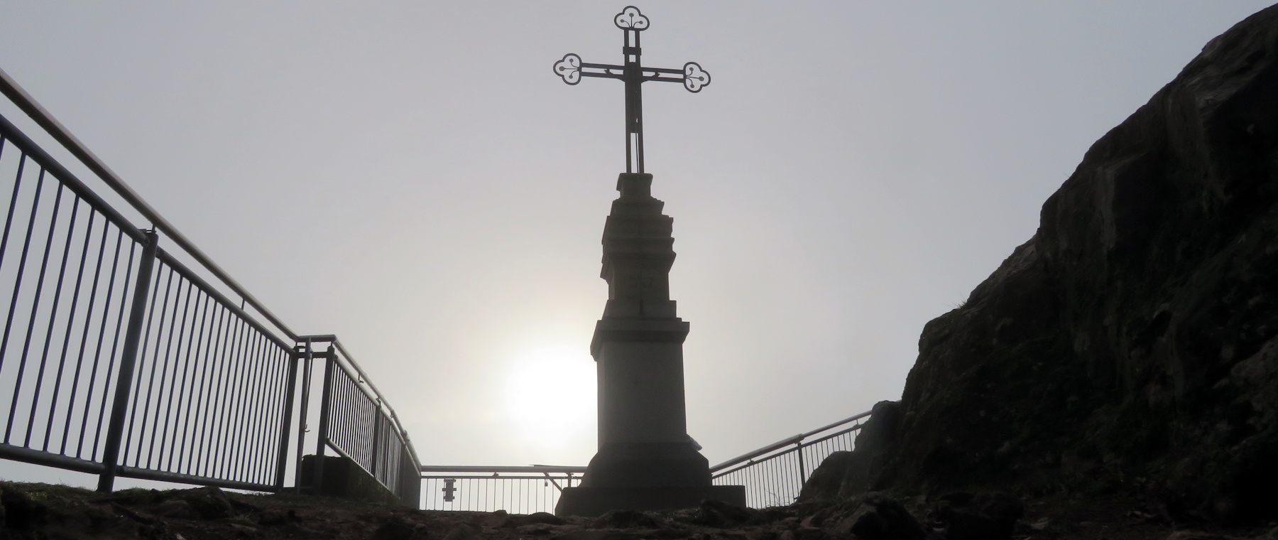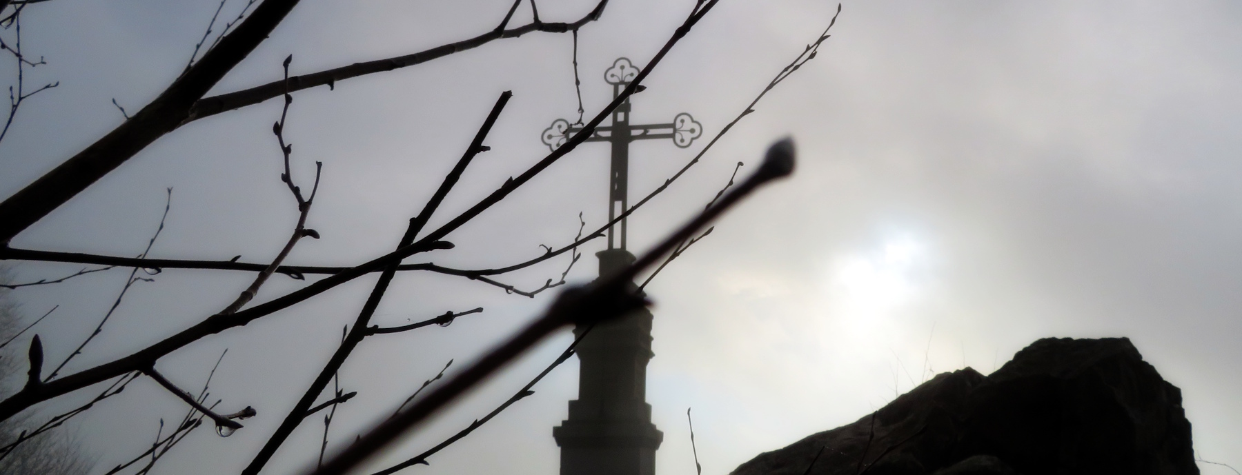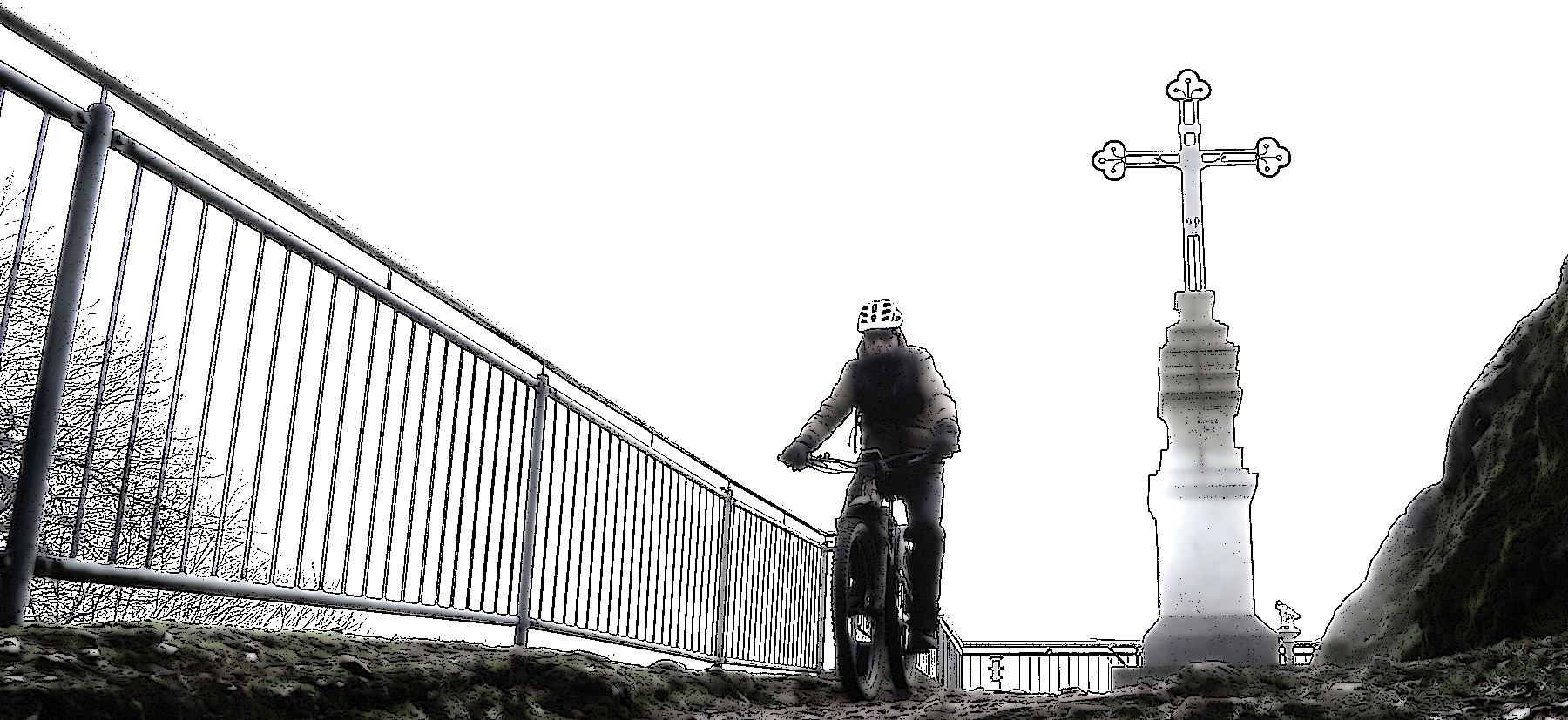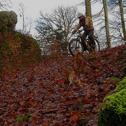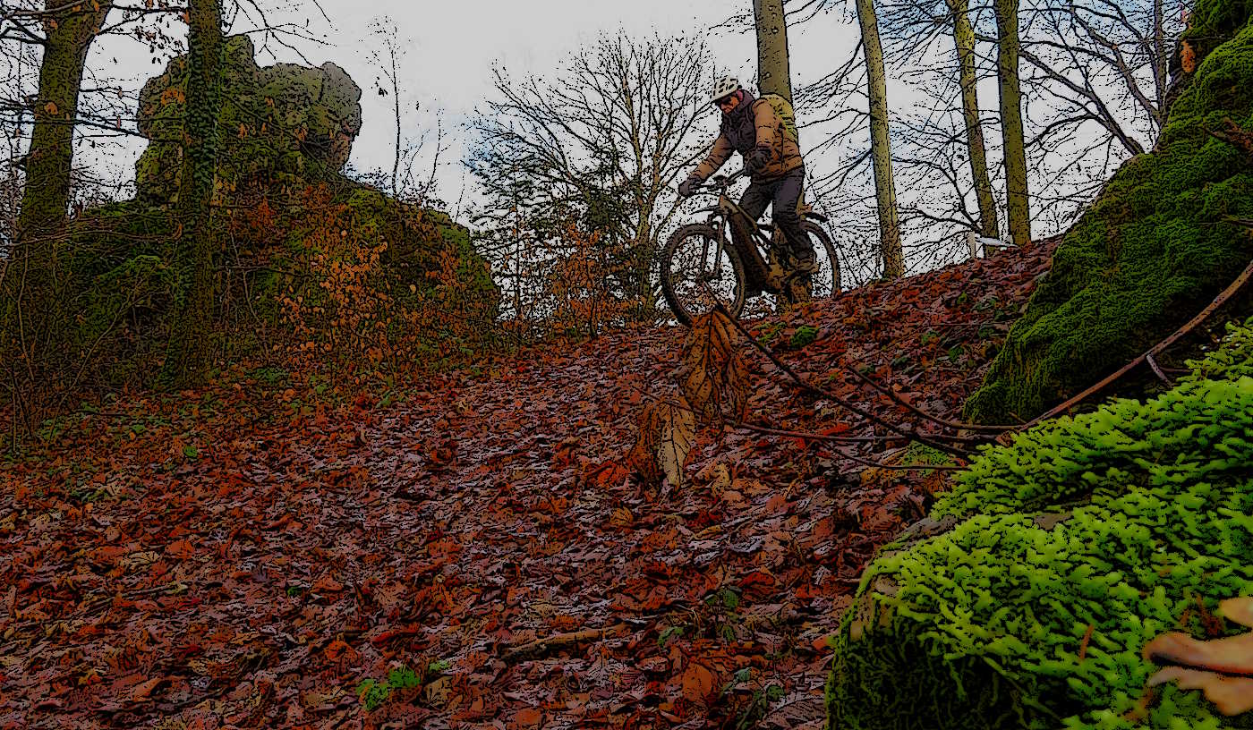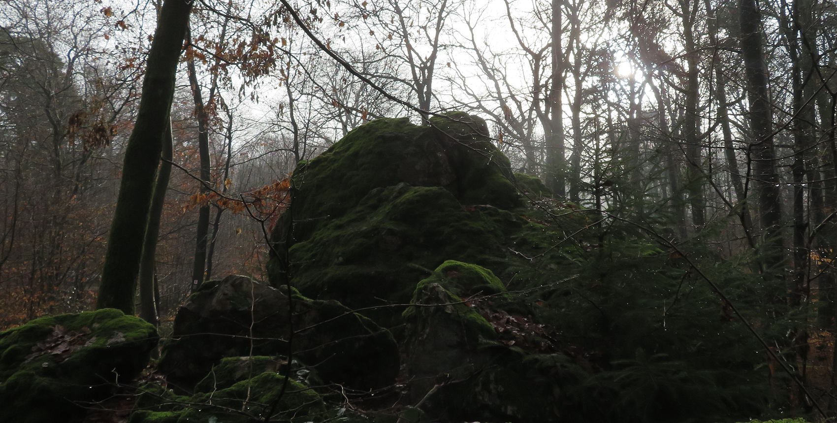 Nach den obligatorischen Fotos am Margaretenkreuz fahre ich runter nach Düppenweiler. Erschreckt hat mich etwas, wie weit das Wohngebiet bis zu den Felsen heran gerückt ist. Die Zäune der Privatgrundstücke stehen bis dicht am Grauen Stein, so dass man wie früher nicht mehr drum herum fahren kann. Schade!