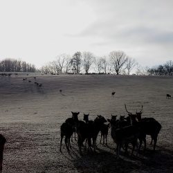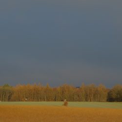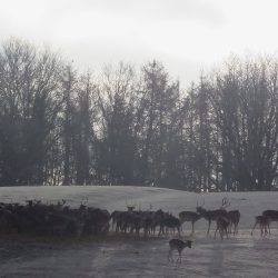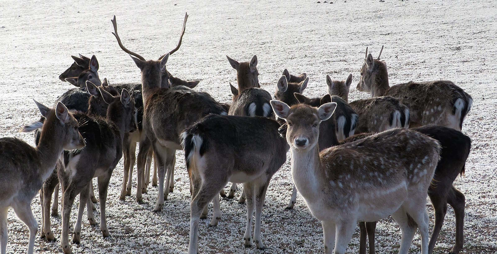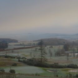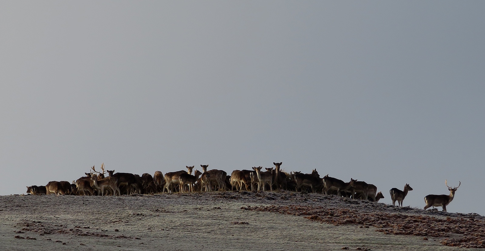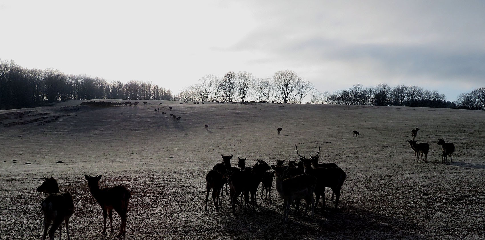 Beim Nunkircher Wildgehege halte ich mich etwas länger auf und schaue den Tieren zu. Ein großer Haufen hat sich eng aneinander gedrängt – wohl um sich gegenseitig zu wärmen. Ein Tier ließ sich sogar ein wenig streicheln. Auch die Landschaft am Golfplatz war in ein besonderes Licht getaucht.