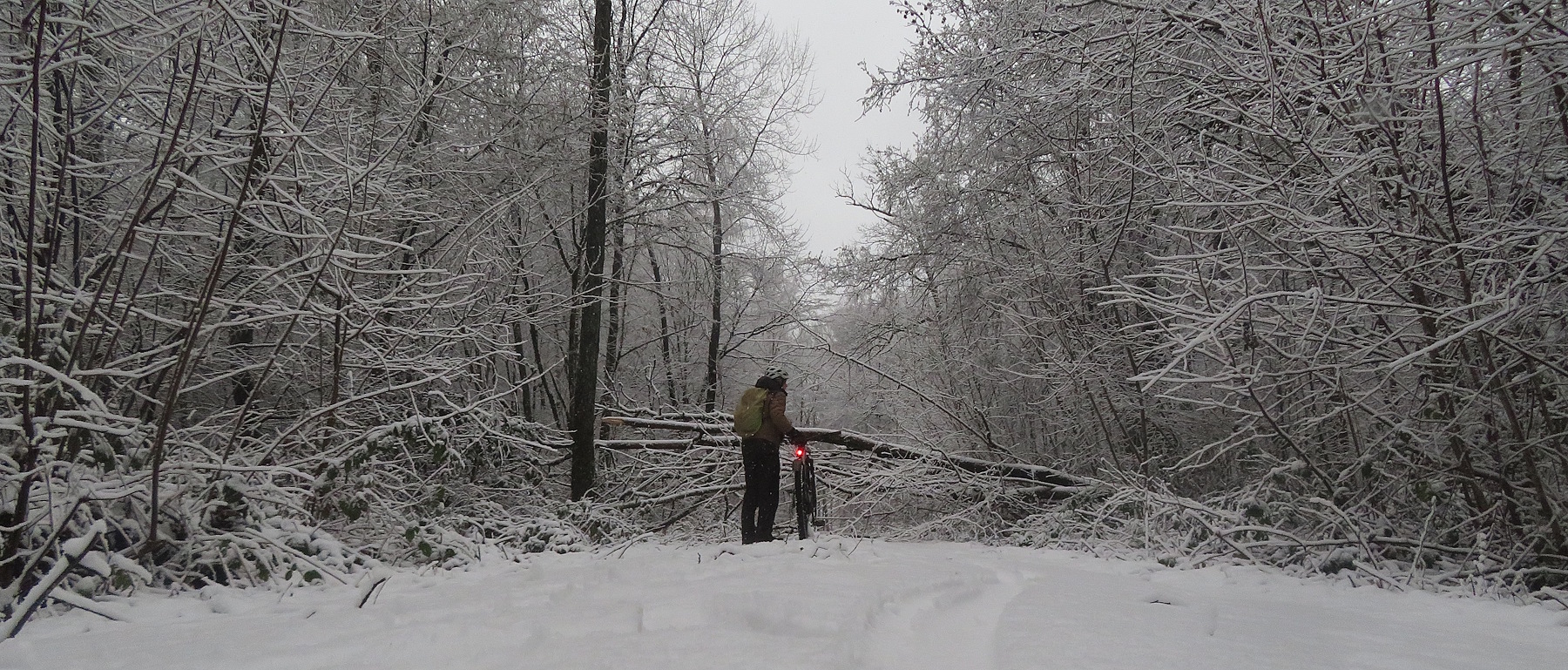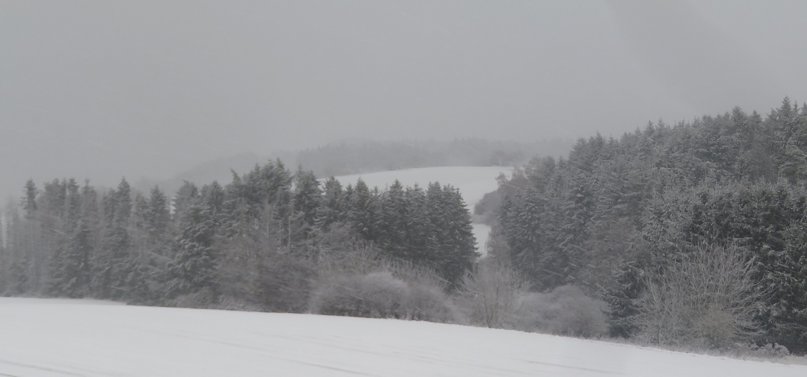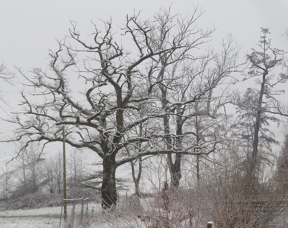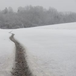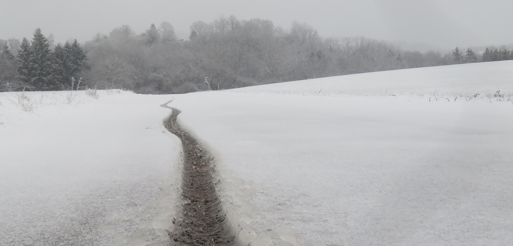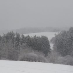Trotzdem muss ich eine Runde durch die Gegend drehen: Lückner, Geisweiler Hof. Hinterm Geisweiler Hof muss ich umdrehen, weil ein Baum auf den Weg gestürzt ist und eine Umgehung durch Dornengestrüpp geführt hätte. Das war ein Zeichen, also geht es zurück durch den Schneematsch…