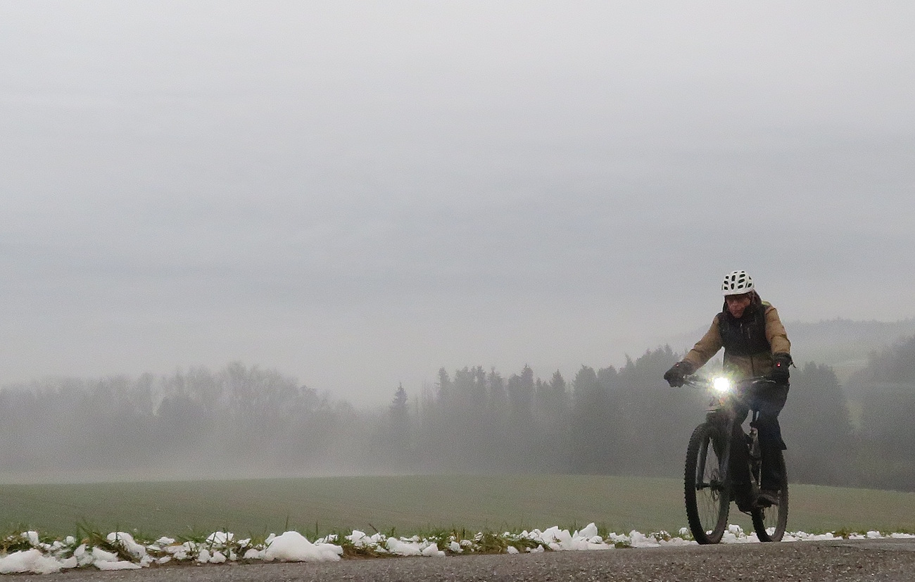 Im Wald ist es mir inzwischen zu nass und matschig, zum Teil sogar zu vereist, so dass ich mir lieber eine Runde auf Teer aussuche…