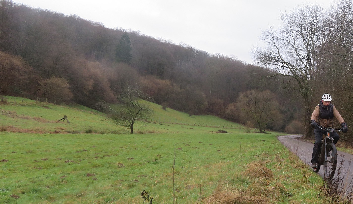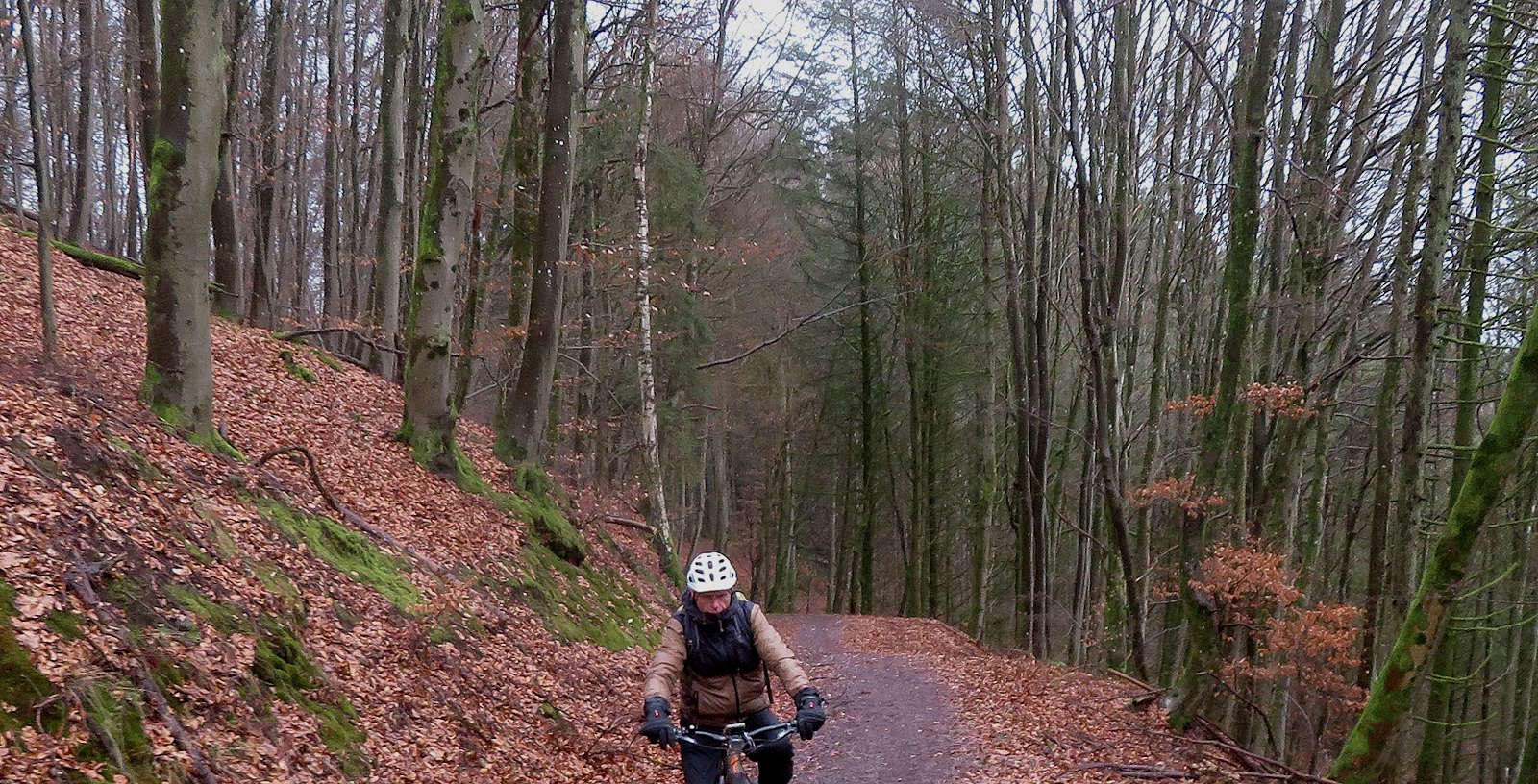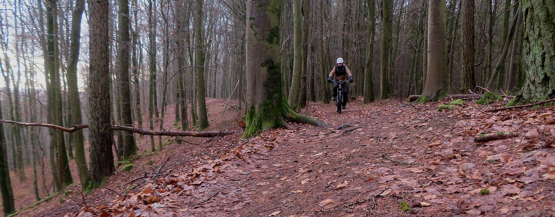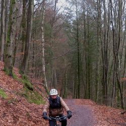 Leider sind die Wege immer noch sehr nass, aber wenn man die richtigen aussucht, lässt sich ganz gut fahren. Die breiten geschotterten Wege sind zwar nicht die bevorzugte Wegeart, aber zu Zeit doch relativ trocken. Auch der Trail über die Oppener Kuppe Richtung Eisenberg war gut zu fahren…