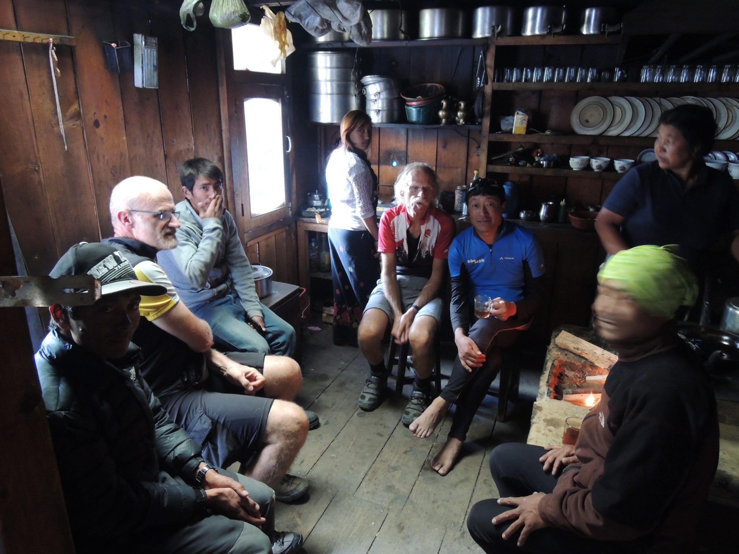 Nachdem Guide Tenging uns angemeldet hat, werden wir in die Küche der Lodge eingeladen, um uns aufzuwärmen und den ersten Tee zu trinken. Eine typische Geste in Nepal!