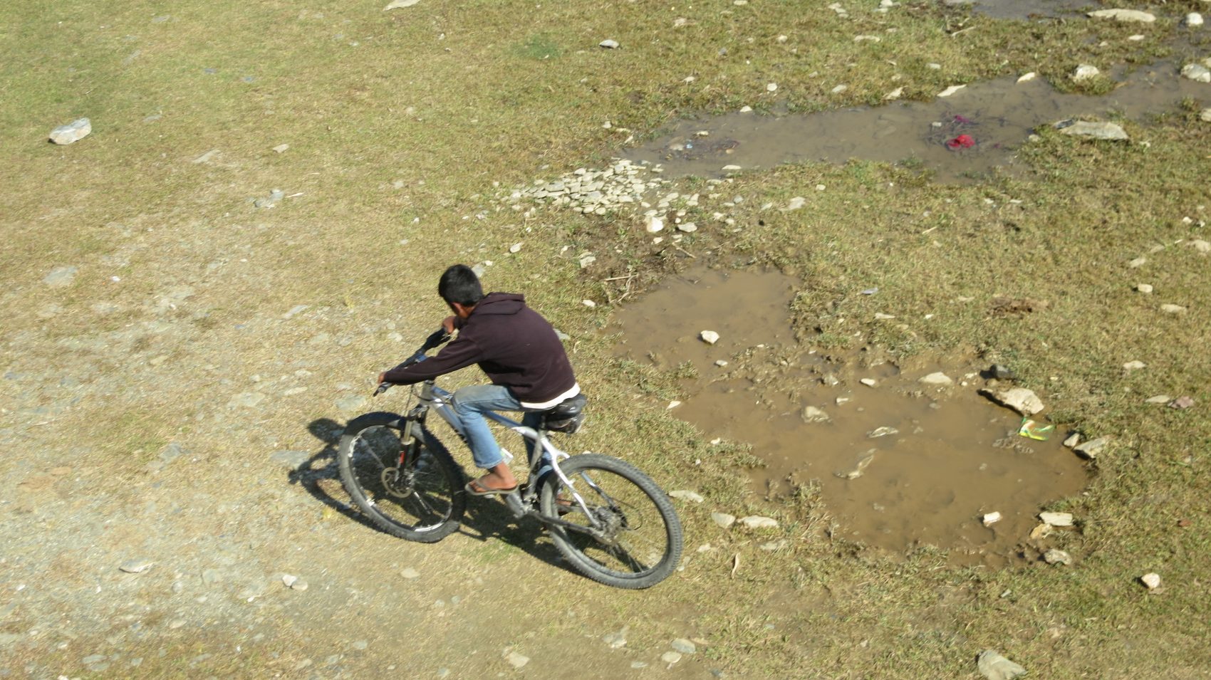 Immer wieder treffen wir auf unserem Weg durch die Dörfer auf Kinder, die scheinbar nur darauf warten, dass Touristen vorbei kommen. Wenn sie uns sehen, kommen sie angerannt. Und wenn wir z.B. wegen einer Steigung die Räder schieben, stehen sie ruckzuck auf einer Pedale und halten sie am Lenker fest und wir müssen sie ein Stück schieben. Manchmal, wenn sie nicht mehr verschwinden, schimpft Teging mit ihnen …
