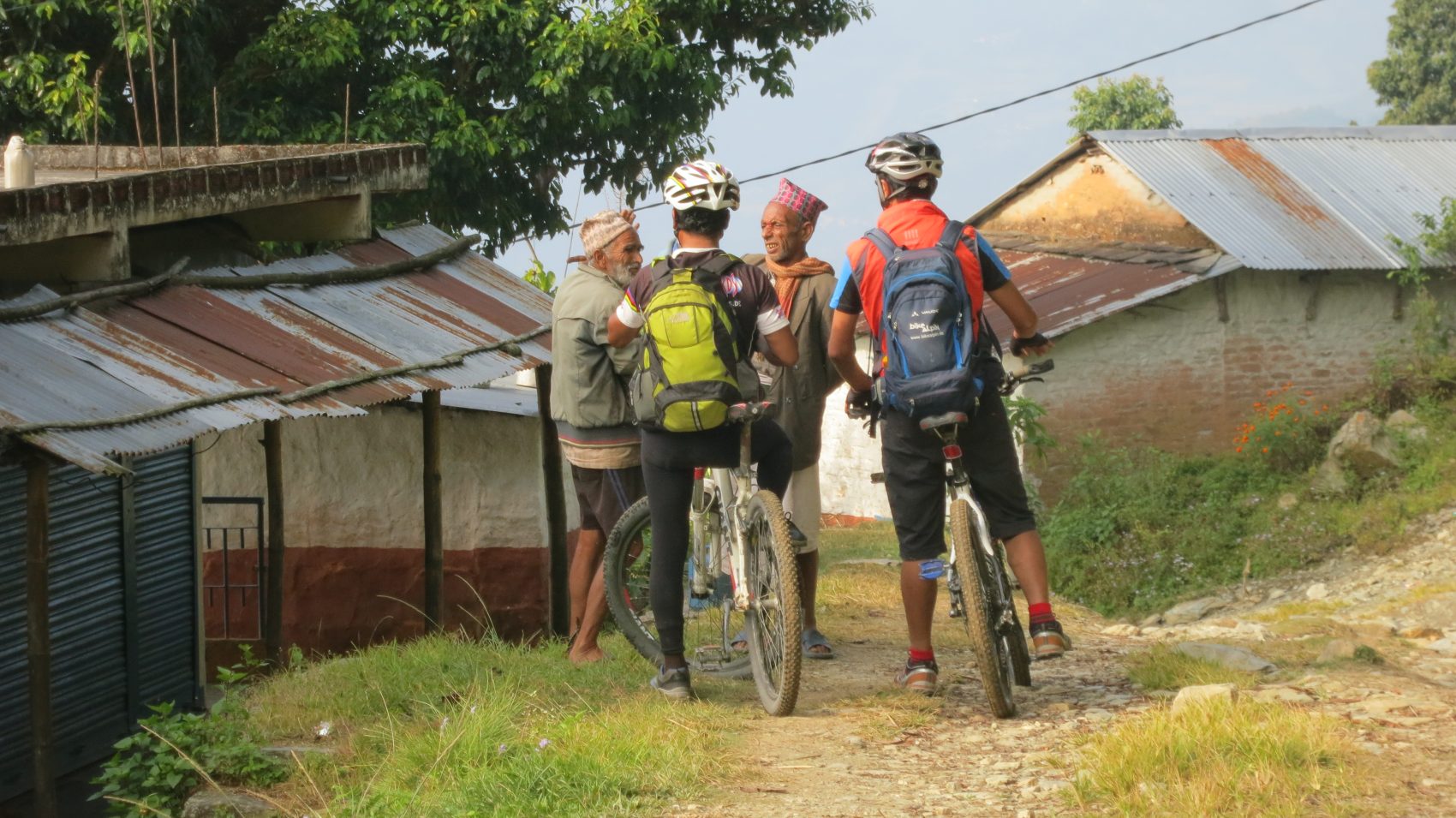 Auf dem Weg zurück nach Pokhara fragt Tenging einen Einheimischen nach dem Weg – und schon kommen noch ein paar andere Alte aus ihren Hütten und wollen sehen, was da los ist…
