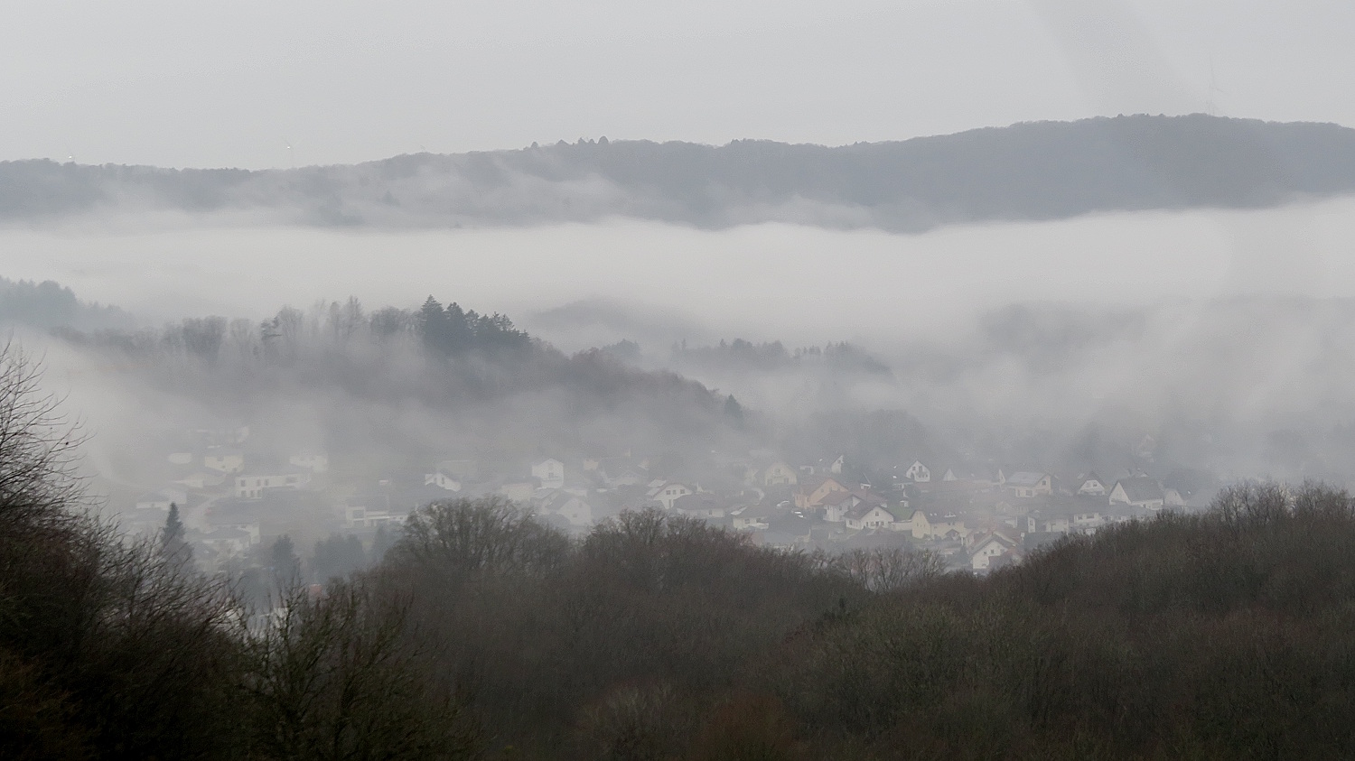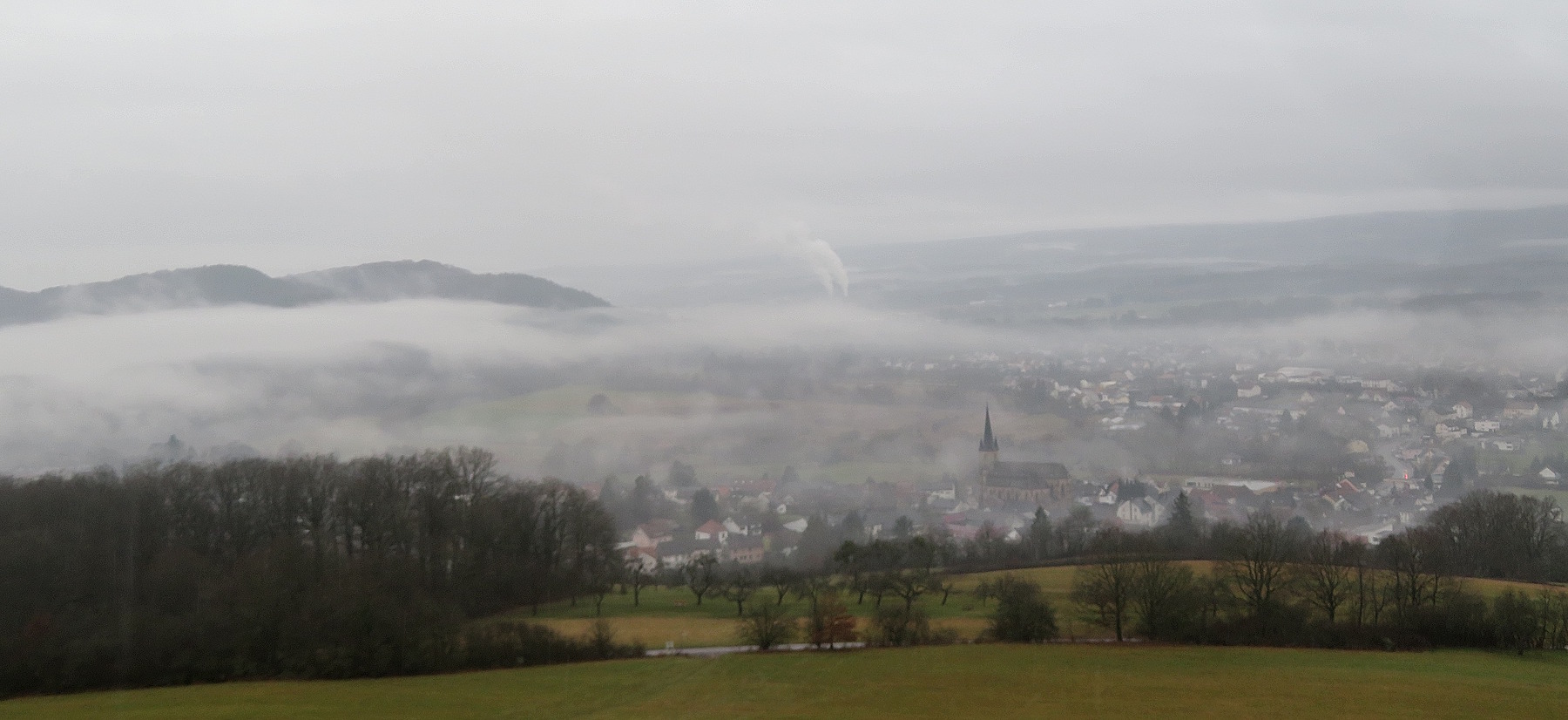Und hat die große Auswahl an Motiven in die verschiedenen Himmelsrichtungen. Zuerst gibt es den Blick auf Nunkirchen und den Hochwald. Später dann rüber in Richtung Limbach…
