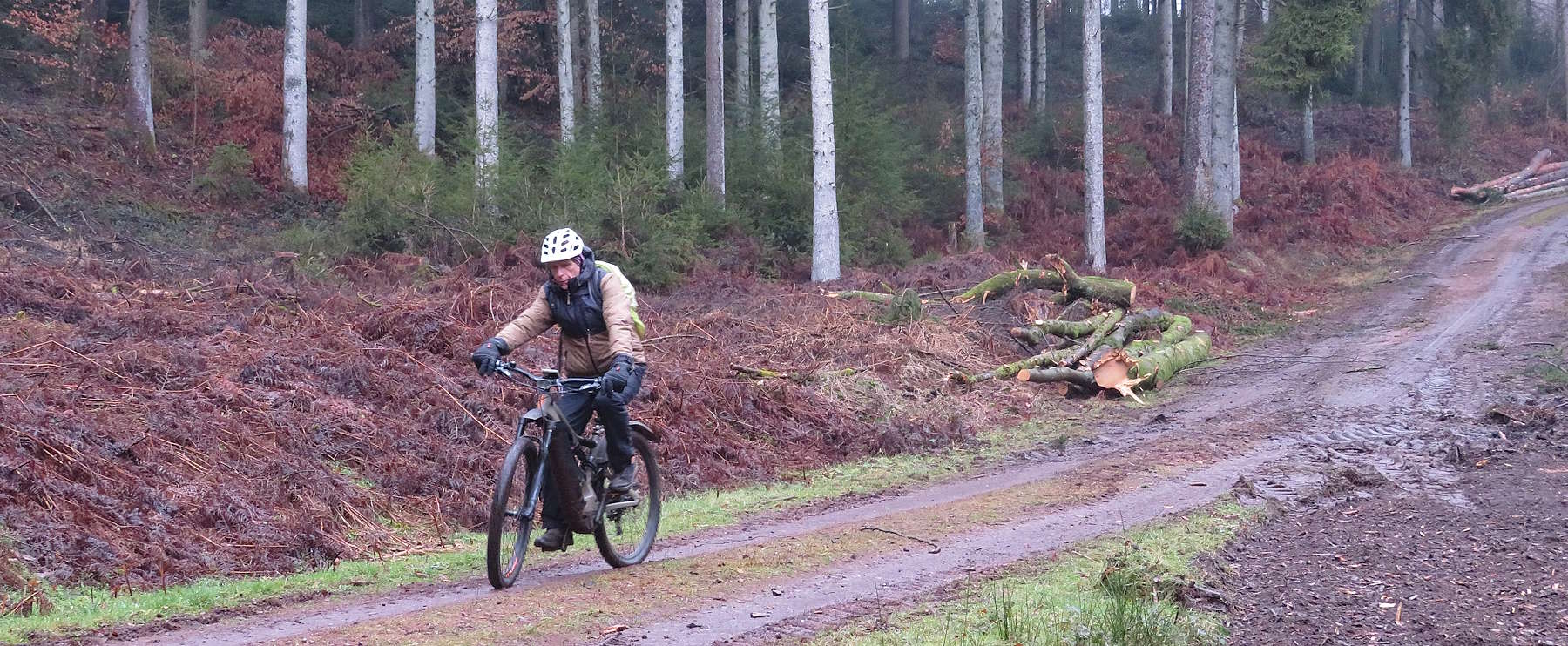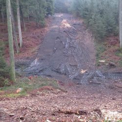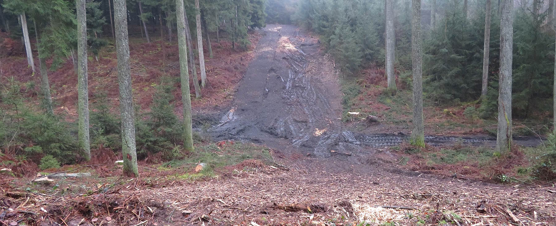 Im Wald entsteht der Matsch zur Zeit durch die Rückefahrzeuge des Forstes. Sogar die sog. befestigten Wege sind oft schlecht befahrbar…