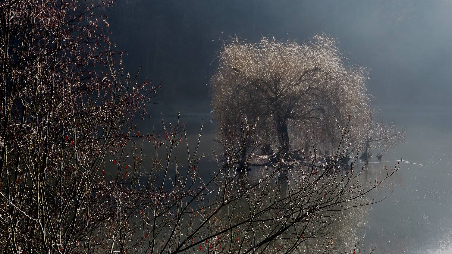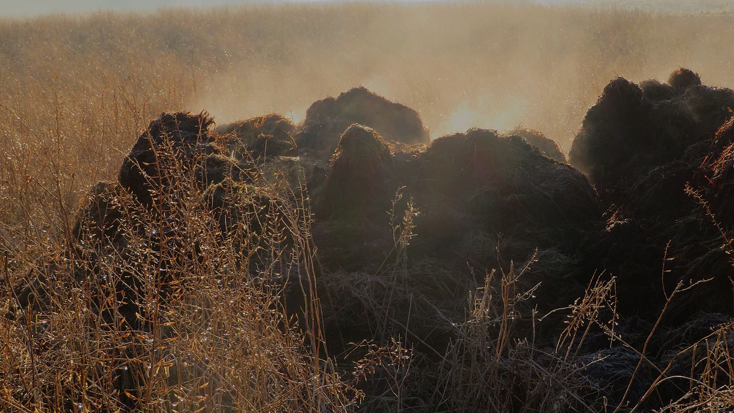 Es ist ein wunderbares Wetter – auch zum Fotografieren. Die Sonne beleuchtet mit aller Kraft die noch verbliebenen Nebelschwaden und ließ sie hell erstrahlen. Aber eisig kalt ist es immer noch…