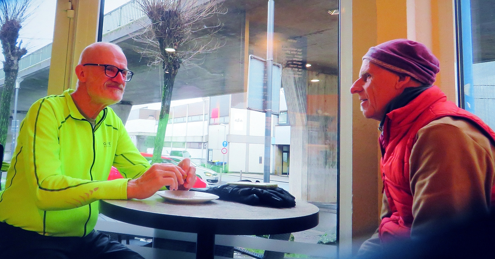 Wir treffen uns in Lebach und wollen dort zusammen einen Kaffee trinken und ein Schwätzchen halten. Letzteres haben wir gemacht, einen Kaffee gab nicht, weil die Kaffeemaschine im Bistro defekt war. Kein Fastnachtsscherz! Wir begnügen uns dann mit einem Brezel. Jörg fährt dann noch mit bis nach M. Leider hat es an diesem Morgen auch noch geregnet, was nun hätte nicht sein müssen…