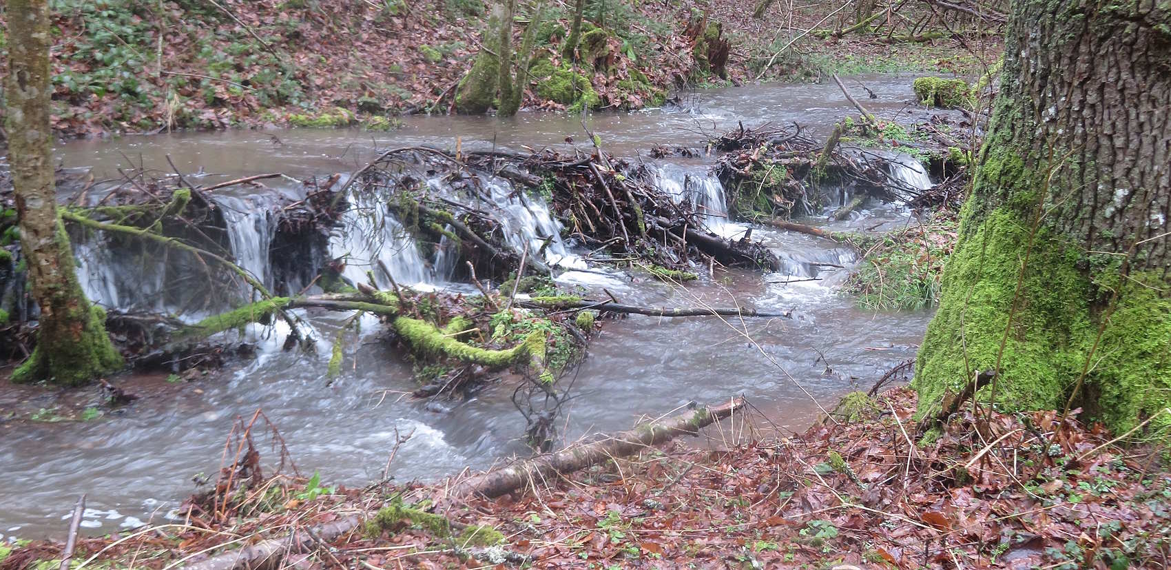 Von Vogelsbüsch fahre ich runter ins Sollbachtal. Heute über einen Weg, den ich noch nicht kenne! Rechts und links des Wegs und von den Hängen herab fließen zahllose kleine Bäche, die man sonst kaum wahrnimmt. Auch der Weiher unten im Sollbachtal ist ziemlich voll und eine Menge Wasser wird in die Prims abgegeben..