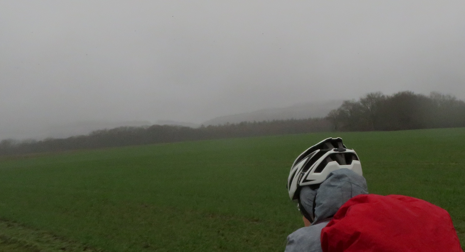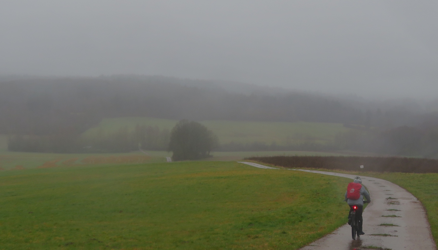 Auf dem Rückweg durch Schmelz regnet es immer noch, doch er perlt an uns ab…