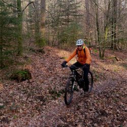 Der Boden ist noch etwas feucht, was die Griffigkeit erhöht und das Fahren in Kurven oder steilen Stellen erleichtert, mehr Gripp und damit mehr Sicherheit bietet.