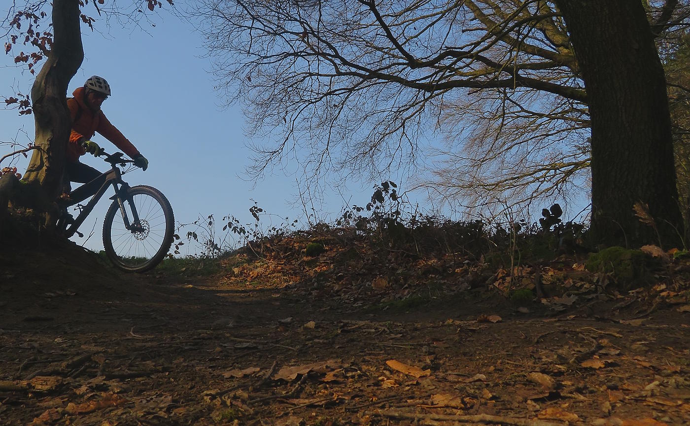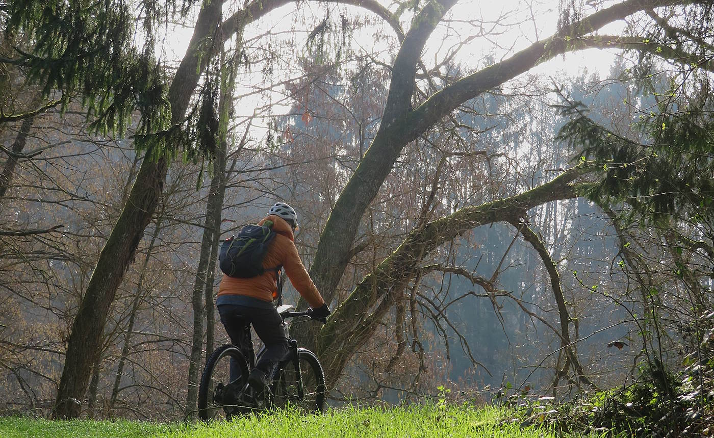 So fahre ich an diesem Morgen zuerst über den Geisweiler Hof in den Lückner und von dort aus Richtung Schmelz. Auf der Höhe, beim Antoniushof entscheide ich mich dann für die Abfahrt in den Ort, biege aber vorher ab und komme zum Hornbachtrail. an ihn schließt sich ziemlich direkt der Schwimmbadtrail an.