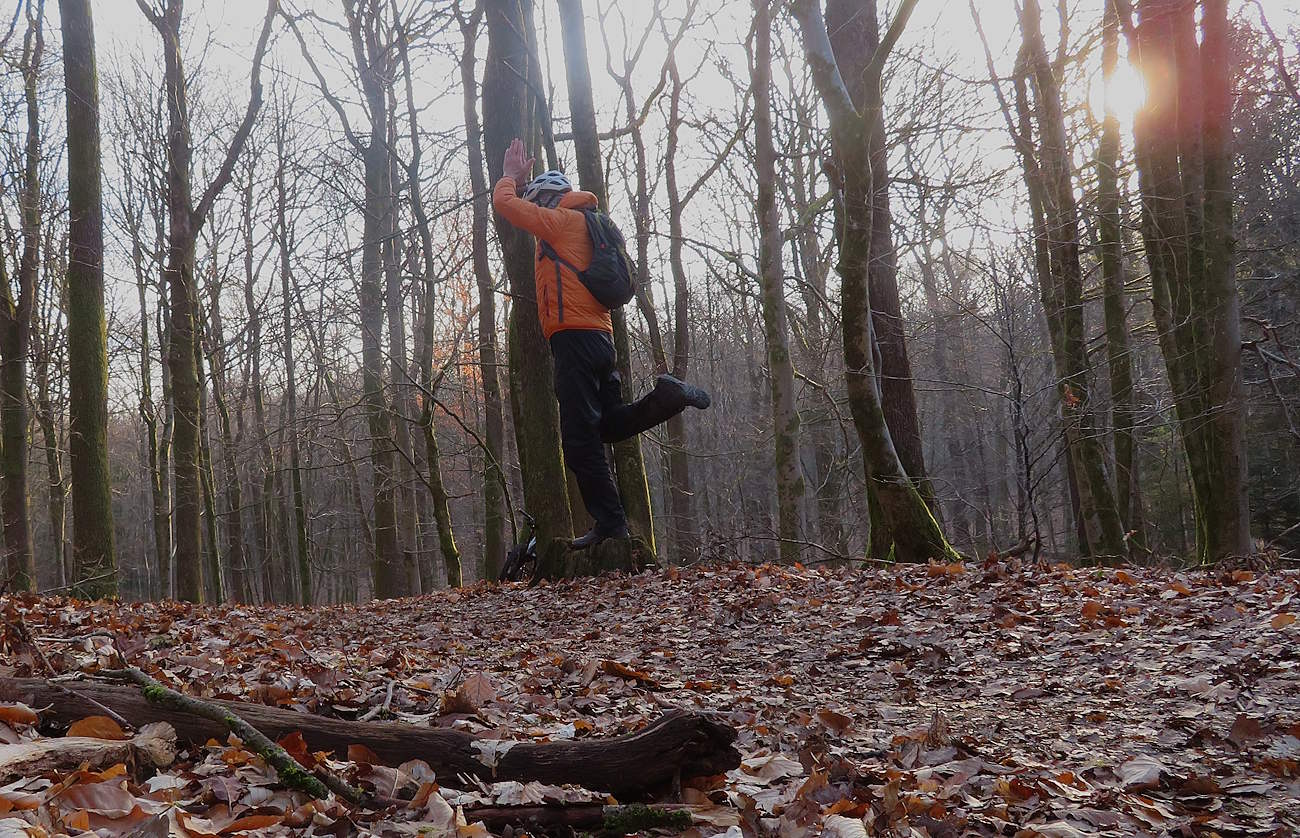 Animiert und angeleitet von meinem neuen Yoga-Lehrer Hang Jo mit seinen Now Yoga Studio probiere und übe ich einige Figuren auch unterwegs immer wieder im Wald.