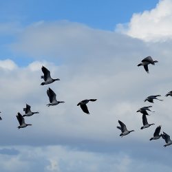 Zuerst kommen wir durch das Moorgebiet und wir sind begeistert von den vielen verschiedenen Vögel, die hier einzeln, in Grüppchen oder auch in Massen zugange sind. Leider trübt das wechselhafte Wetter etwas das Vergnügen…