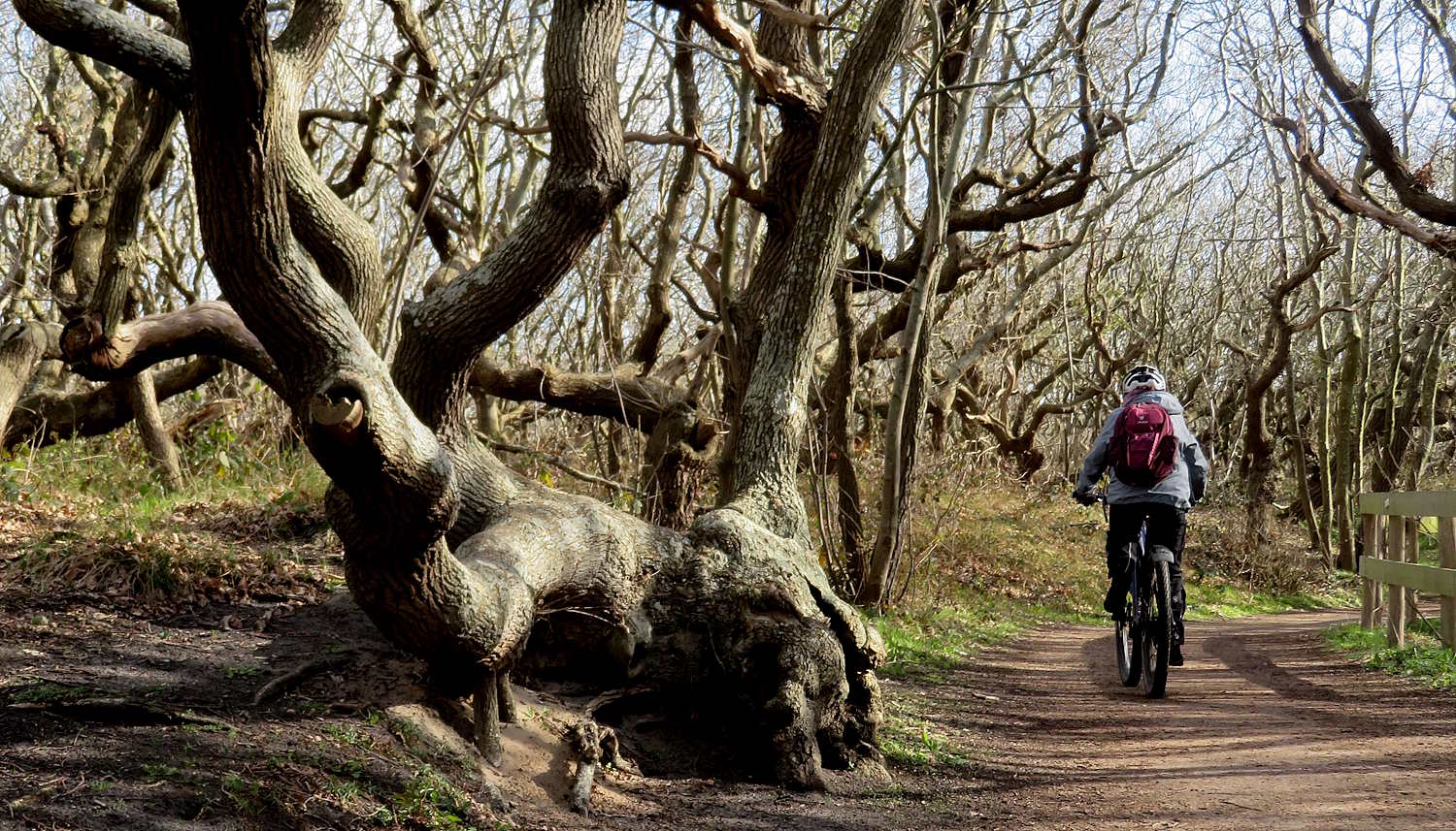 Das Highlight aber war das Waldstück zwischen Dombuerg und Oostkapelle: vom Wind gebeugte, verkrüppele Bäume, die hier mutig ihre Stellung halten…