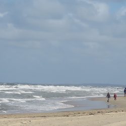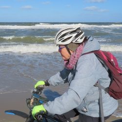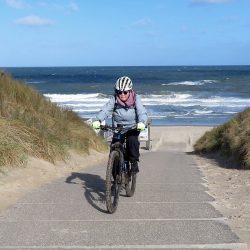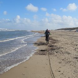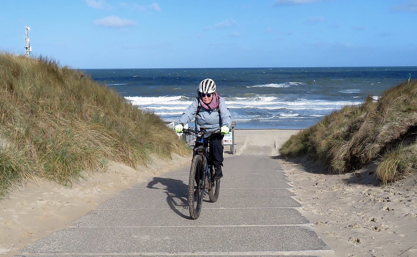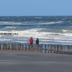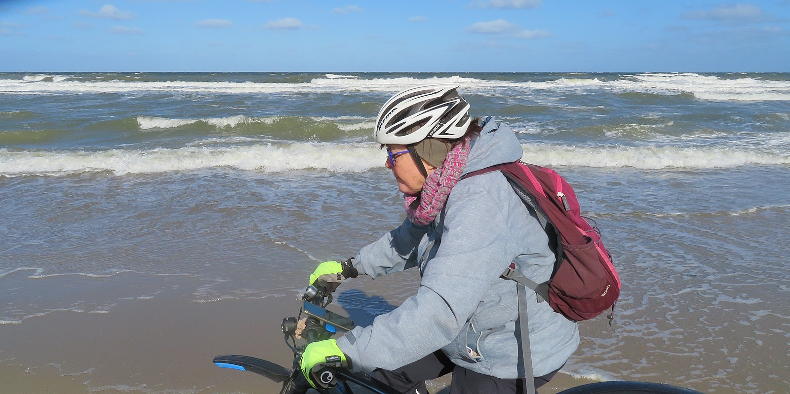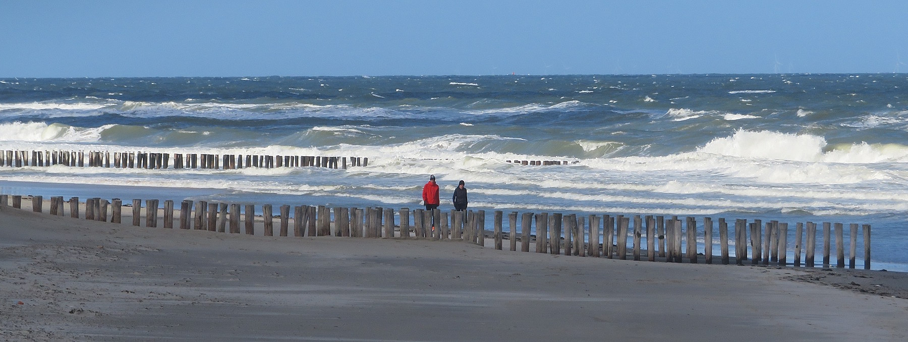 Irgendwann fanden wir doch unser Ziel und einen Zugang zum Meer und fuhren dort am Strand entlang zurück. Auch hier tappten die Leute irgendwie blind für andere einem im Weg herum, hatten nur ihre Hunde im Blick… In Oostkapelle gingen wir dann zu Fuß zum Strand und ließen uns noch einmal den heftigen Wind um die Nase wehen…