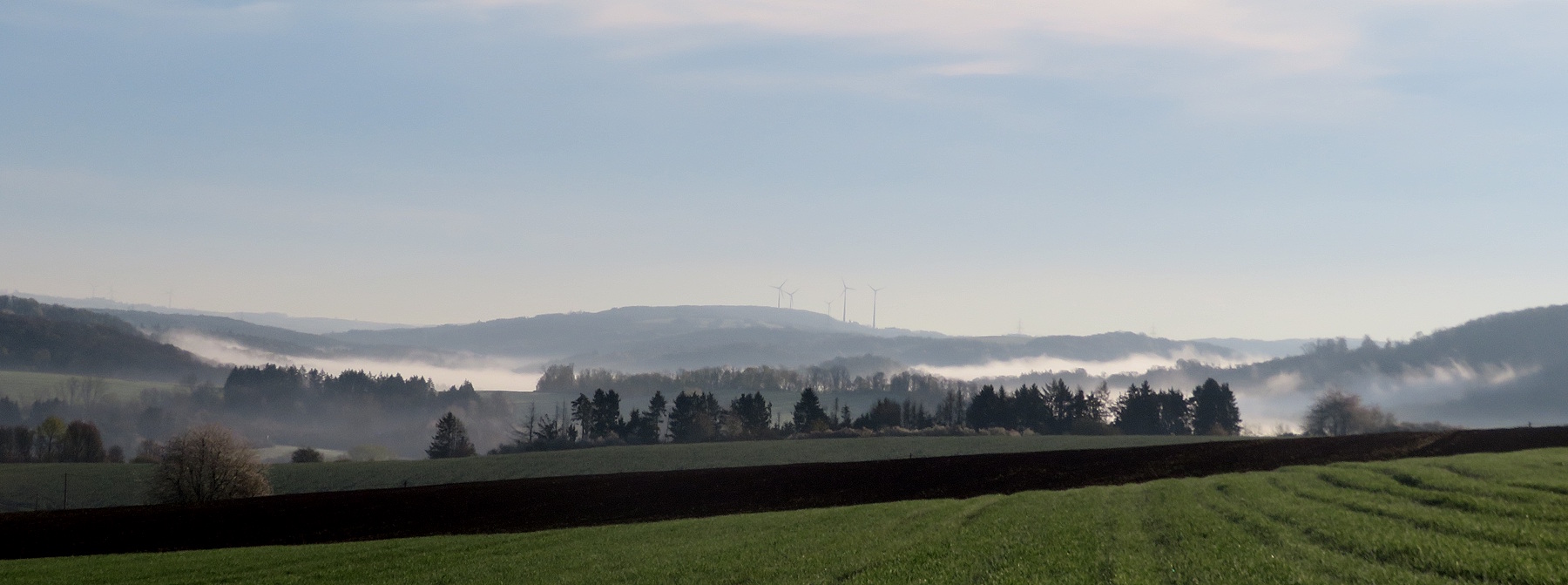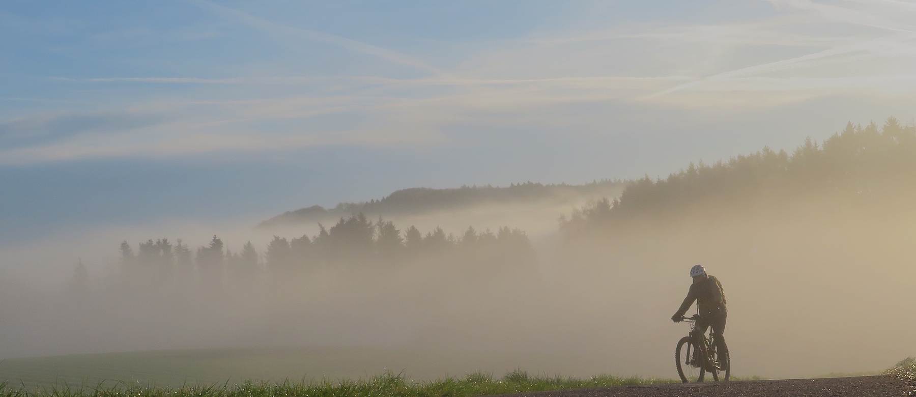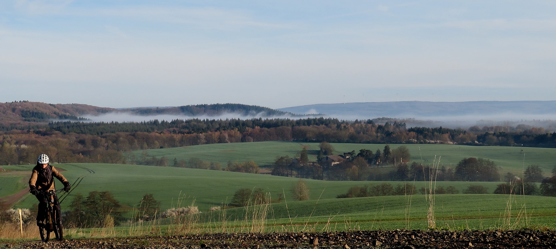 Vorm Eiersuchen aber gibt es deshalb erst einmal eine Runde durch den österlichen Morgen. Und der ist wunderschön: die Sonne strahlt, weiße Wolken schmücken die Täler ringsum.