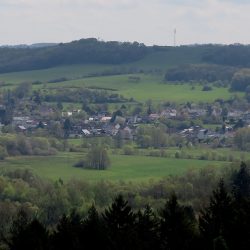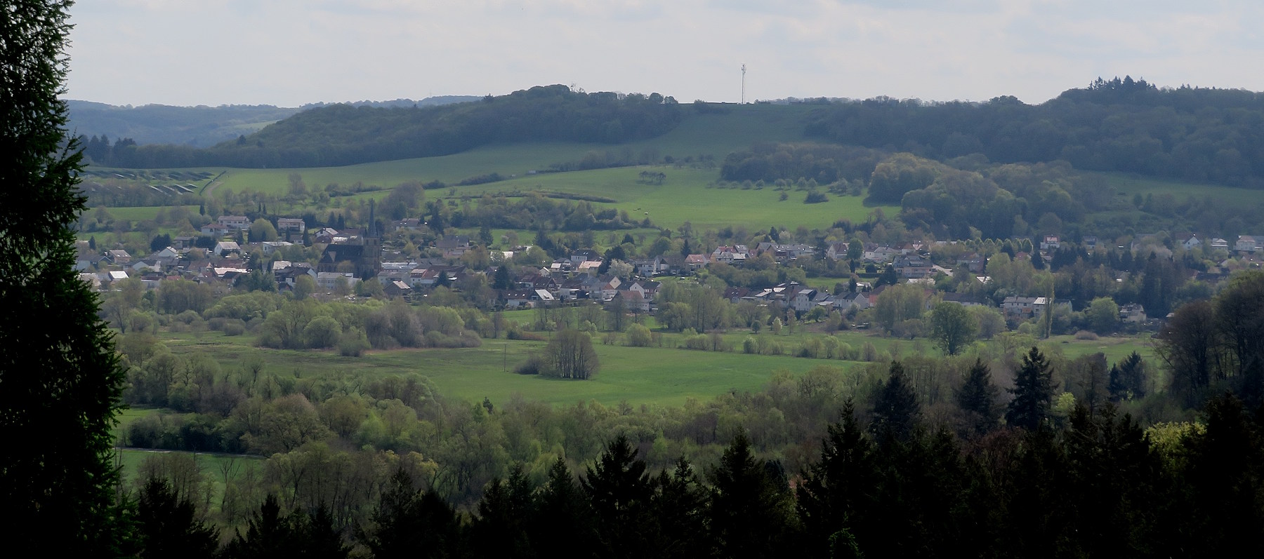 Der Weg endet auf einem Rastplatz mit Getränkebox und vor allem einer schönen Aussicht auf Nunkirchen und Auschet.