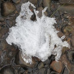 Sie muss sich mit Schnee und Eis auseinander setzen. An den Rädern und auf den Steinen bleibt der Schnee liegen, es bildet sich Eis und mutiert zu einzigartigen Fornen…