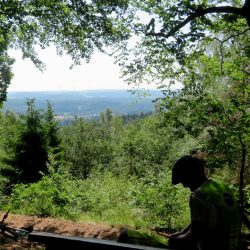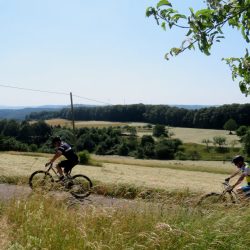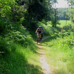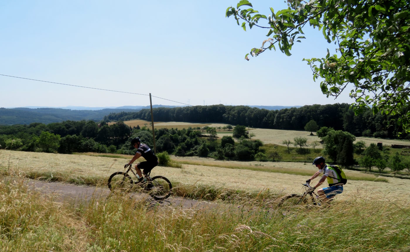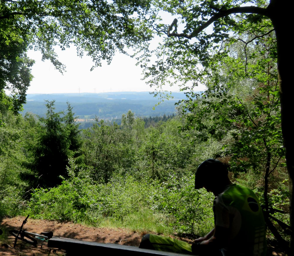Nach der Pause auf dem Schönerstkopf gibt es die erste Portion Wurzeln. Hinter der Girtenmühle bis nach Bergen folgt die zweite. Und am Stausee Losheim folgt die letzte. Die Handgelenke beschwerteen sich etwas, aber sonst waren alle recht zufrieden…