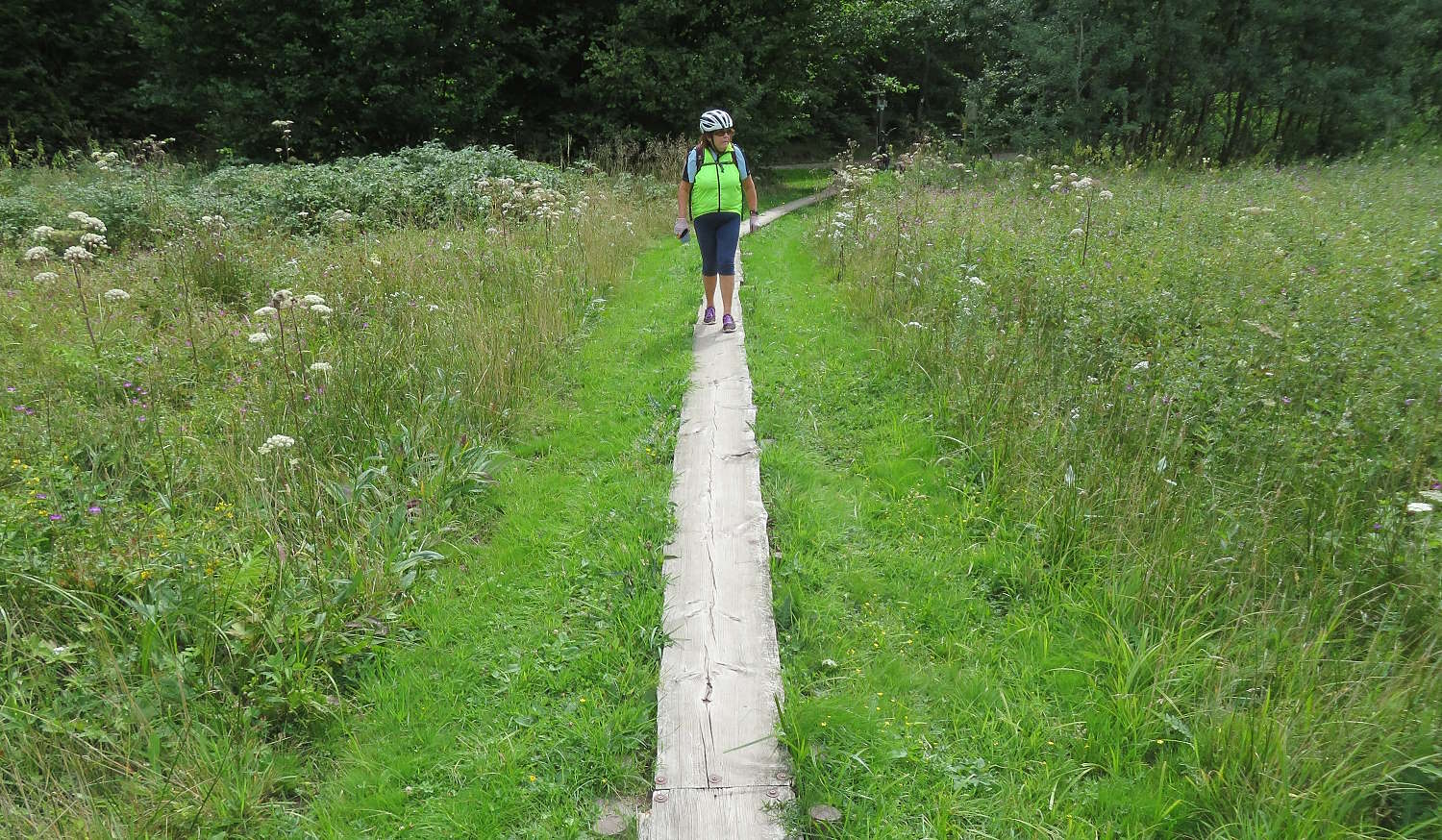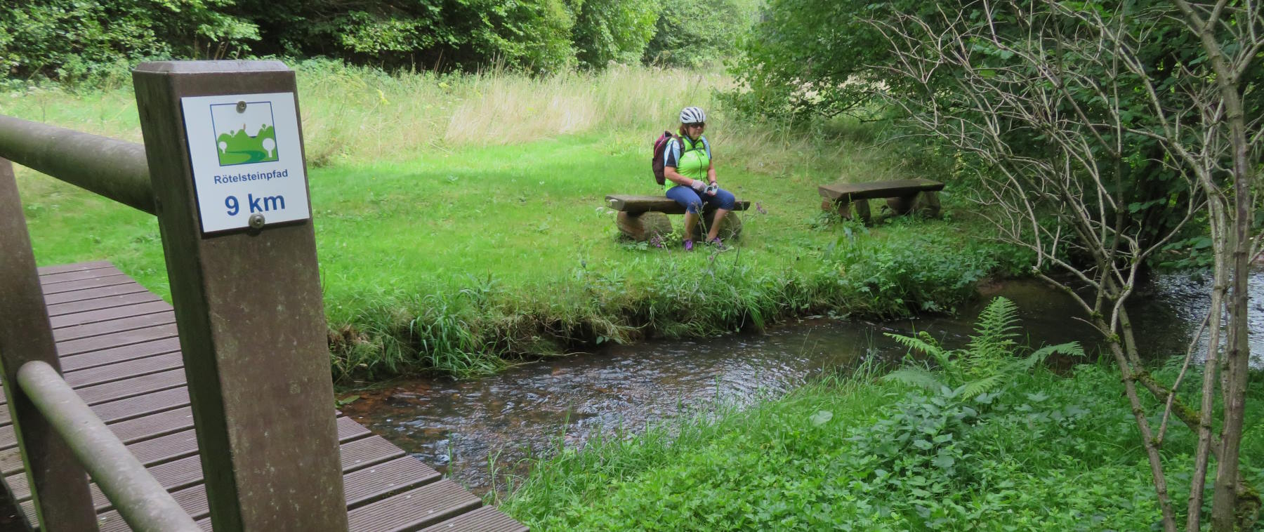Der Rückweg führt uns durch wunderbare Gegenden und über eine Menge neuer Wege (z.B. Grenzweg, Röstelstein Pfad). Wir kommen am Obertaler Bruch vorbei, an der Wildfrauhöhle und an der jungen Nahe…