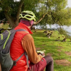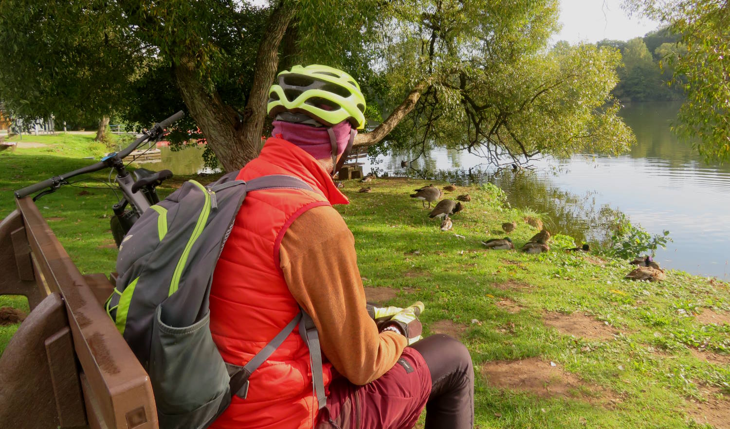 Über Büschfeld fahre ich bis zum Noswendler See und schaue dort ein wenig den Tieren zu. Viele schlafen noch oder machen Morgenputz. Es ist wieder ein schöner Herbstag und ich gondele gemütlich und dankbar durch die Gegend… Nicht immer flüssig, ein paar Mal muss ich absteigen, weil Bäume im Weg liegen…