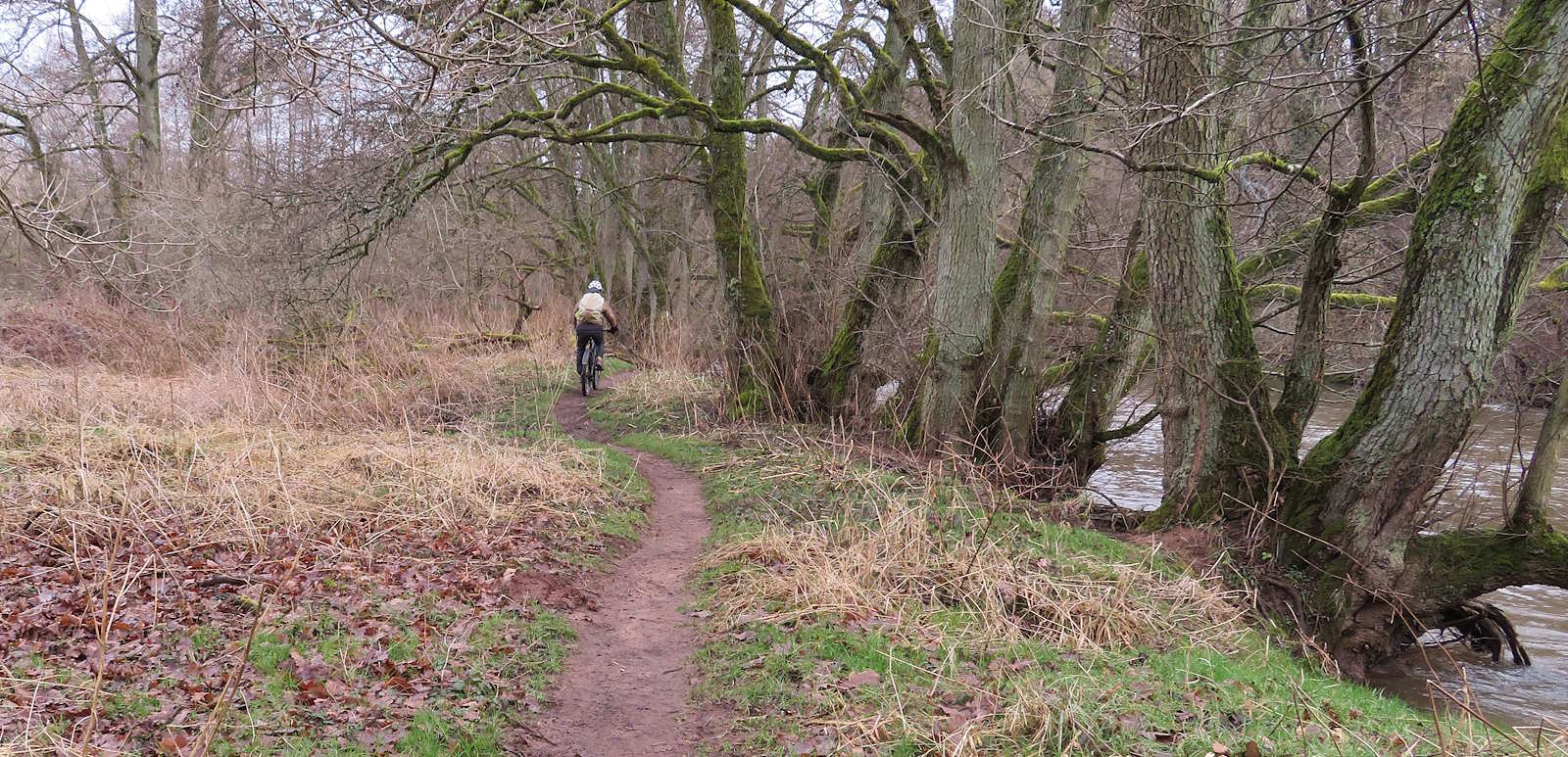 Schon lange ist dieser Ort mir sehr lieb und der dort beginnende Trail ebenfalls. Heute besuche ich die Örtlichkeiten seit langem mal wieder. Nur fahre ich diesmal nicht über die großen Hundewiesen an der Prims zurück, sie sind mir zu nass und aufgeweicht. Bin ich hinzus durch den Wald gekommen, geht es zurück durch den Ort…