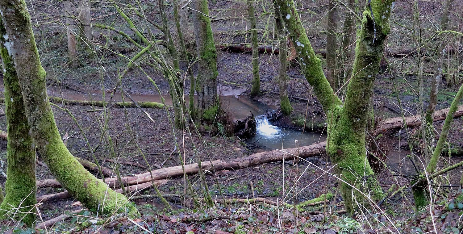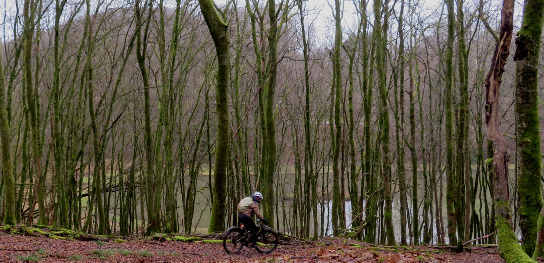 Der Weg zurück über den Trail hinunter zum Haanweiher ist leider kaum fahrbar: zu abschüssig geworden, zu viele Bäume im Weg. Ich hangele mich geradenohc so zu Fuß und schiebend hinunter…