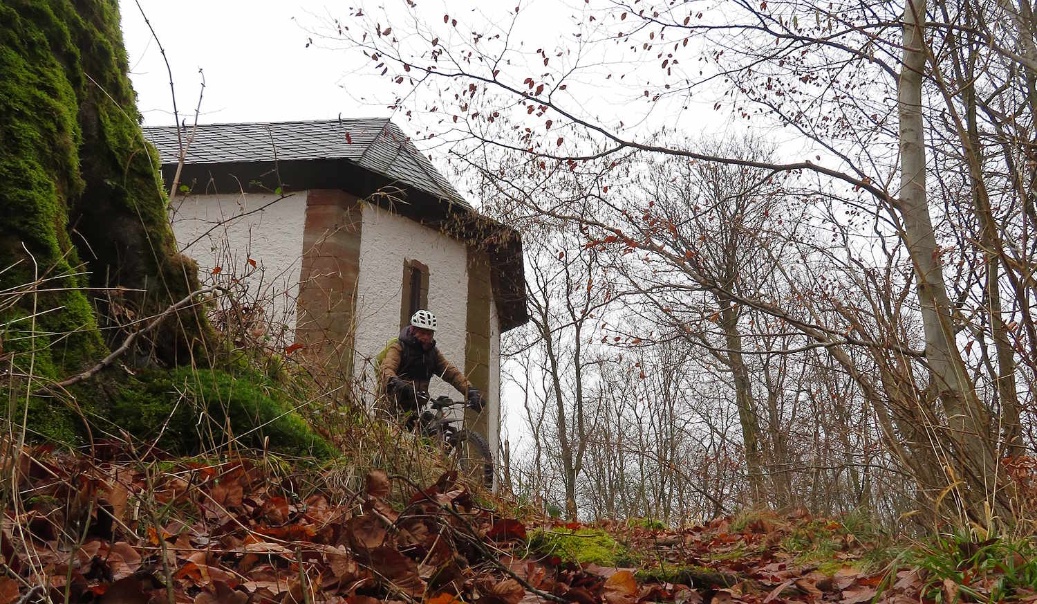 Die Runde heute war logischerweise recht feucht und kühl, aber wunderbar ruhig. MIt Ebike ist der Anstieg bis zu Kapelle natürlich ein Klacks. Nur das letzte Stück zur Kapelle muss man schieben. Die historischen Zusammenhänge kann man im Link vorher (Tour 2018) nachlesen.